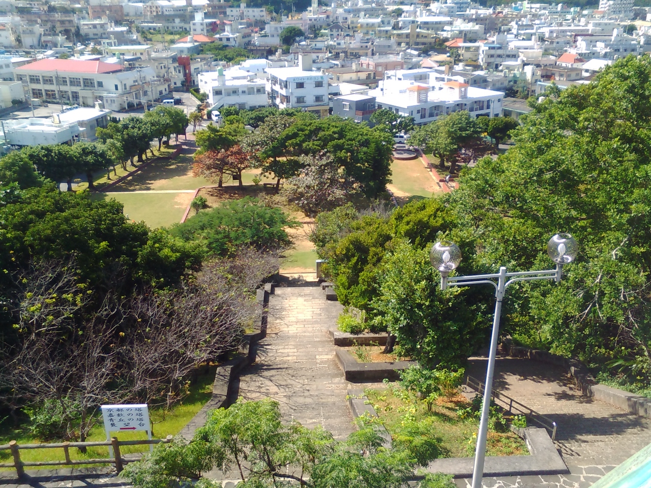 公共交通機関はバスのみ。公園の南側に位置する嘉数バス停から住宅地の中を徒歩10分ほど。公園の北側へは高台から狭い階段があるだけで、階段を下りたら有名な宗像堂というパン屋さんの近所に出ます。 閉じる投稿日:2018/01/19