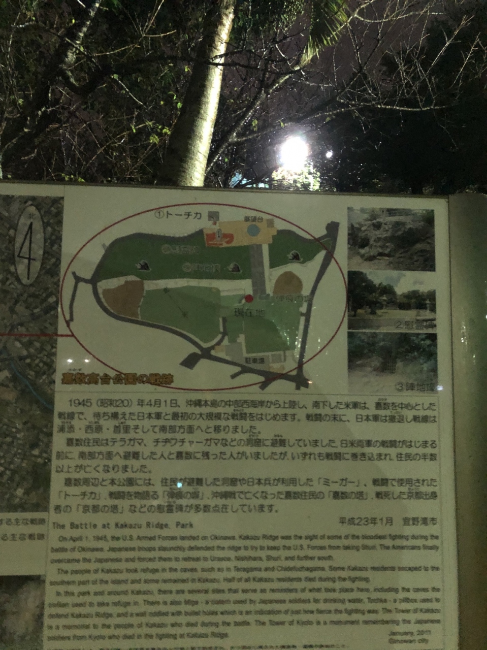 トーチカや陣地壕や弾痕跡など見たい所ばかりだったのですが、ここに到着したのが20:00近く。