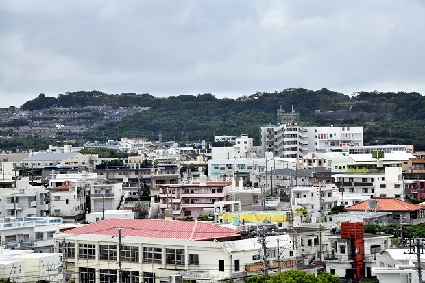 沖縄戦「標高約92メートル」の激戦地高台から宜野湾市住宅街の普天間基地が一望できます