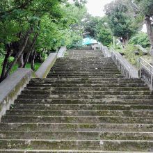 駐車場からの階段は息切れするほど急です。
