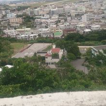 登り切ると地球儀のような形をした展望台があり、ここからは普天間基地ともう一つの激戦地である浦添の前田高地を見ることができます。