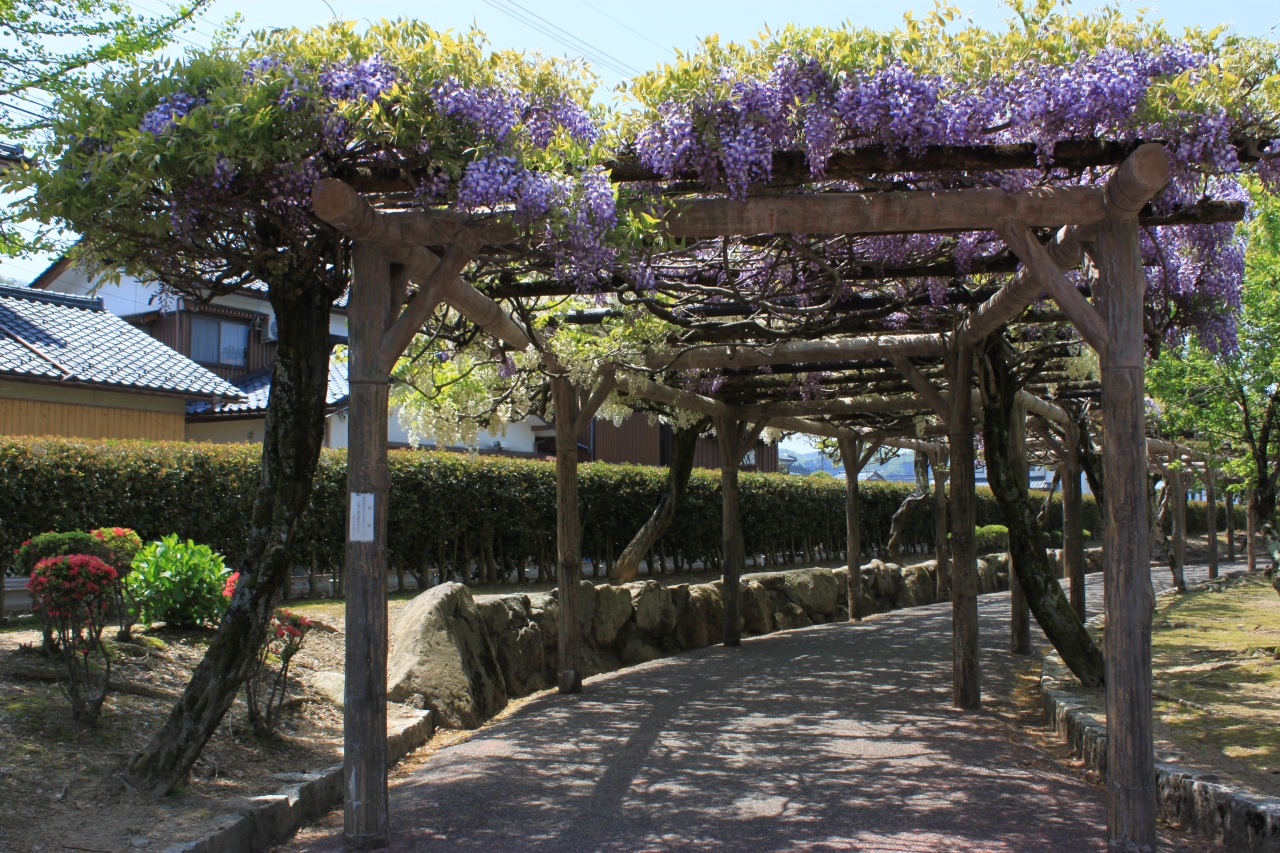 源氏物語の作者、紫式部が越前国司に任ぜられた父・藤原為時とともに、一年余りを越前市にて過ごしたといわれています。これを記念してつくられた紫式部公園は、平安時代の貴族の住居を模して池や築山を配置した、全国で唯一の寝殿造庭園です。また春には、式部とふじまつりが開催され園内の藤棚が見頃を迎え、優美な雰囲気が漂います。