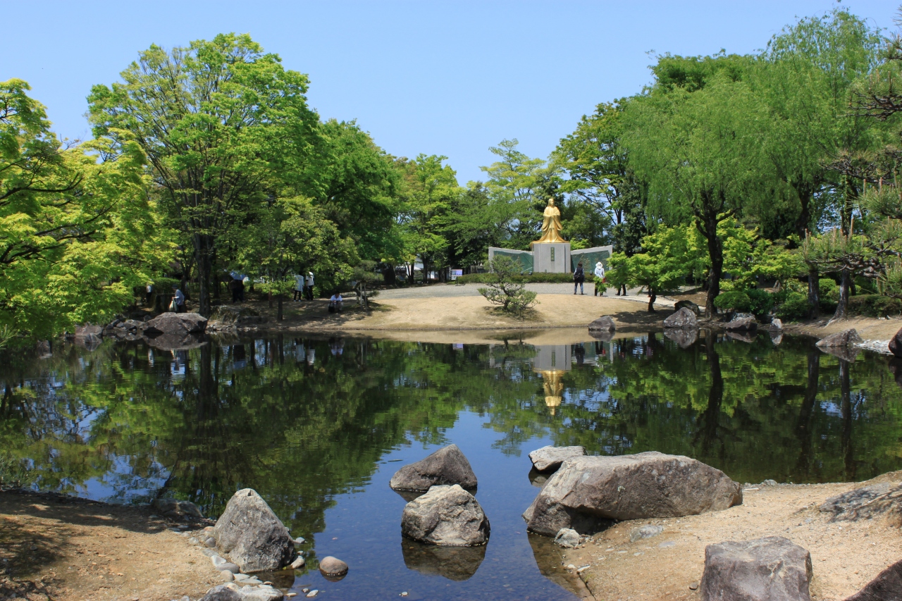 - 池を配した庭園で金色の紫式部像が目立つ by teratanichoさん