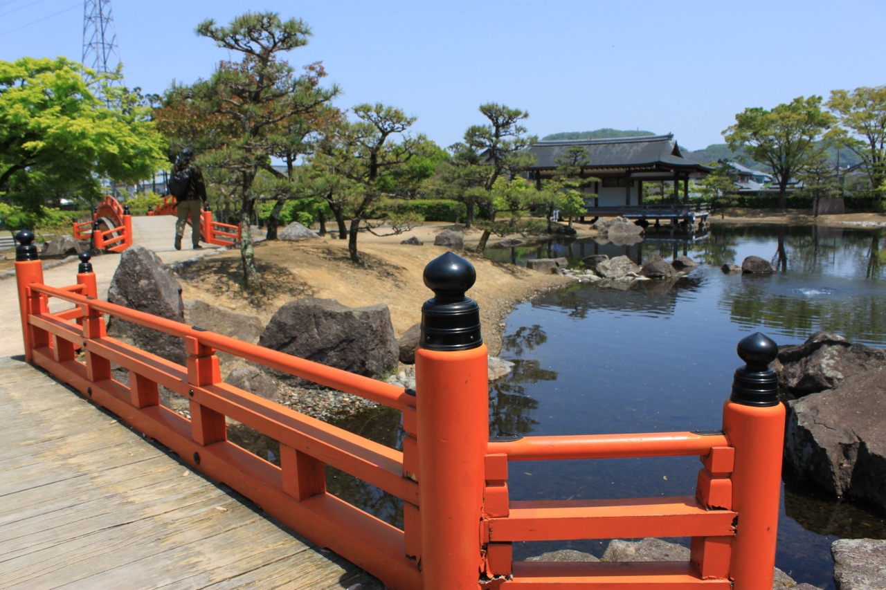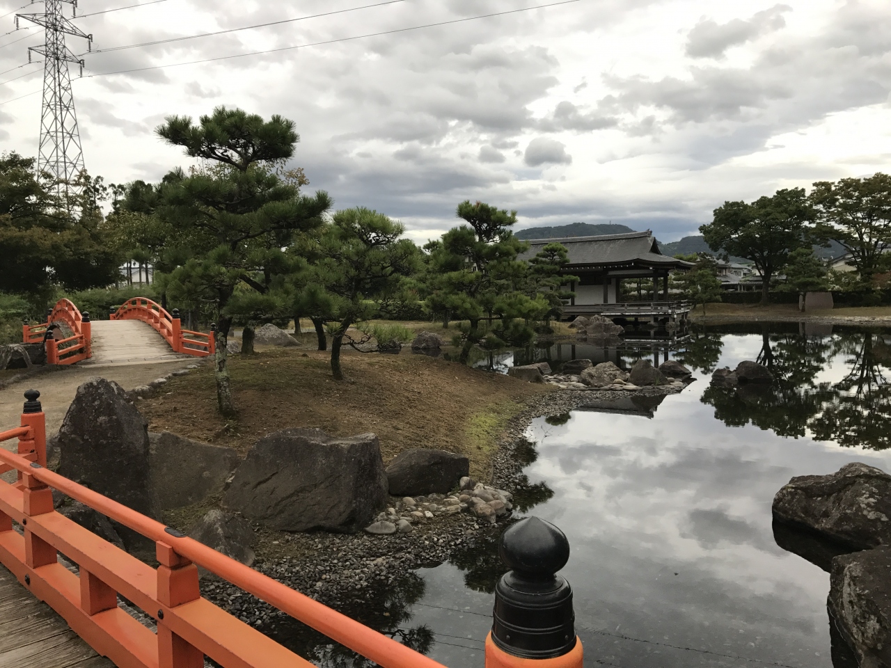 平安貴族が見ていた景色といえば聞こえが良すぎるんですが、公園の解説版には「このような寝殿造り庭園と釣殿が平安時代の趣のまま... 続きを読むに再現されたのは全国でも初めてのことである」と書かれているので、平安時代の貴族が見ていた景色に以外と近いものがあるのかもしれません。