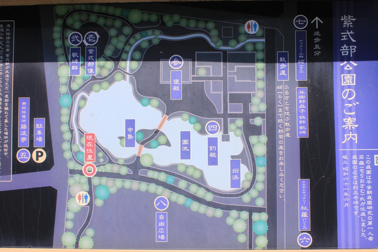 紫式部ゆかりの地としてこのような公園が作られているんですが、1年ちょっとしか滞在しなかった人物を盛大に持ち上げた公園なので、紫式部本人とこの公園設立の心の乖離が感じられます。