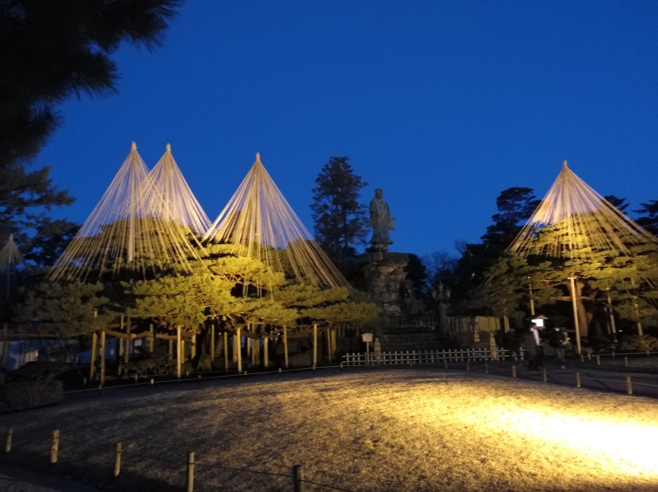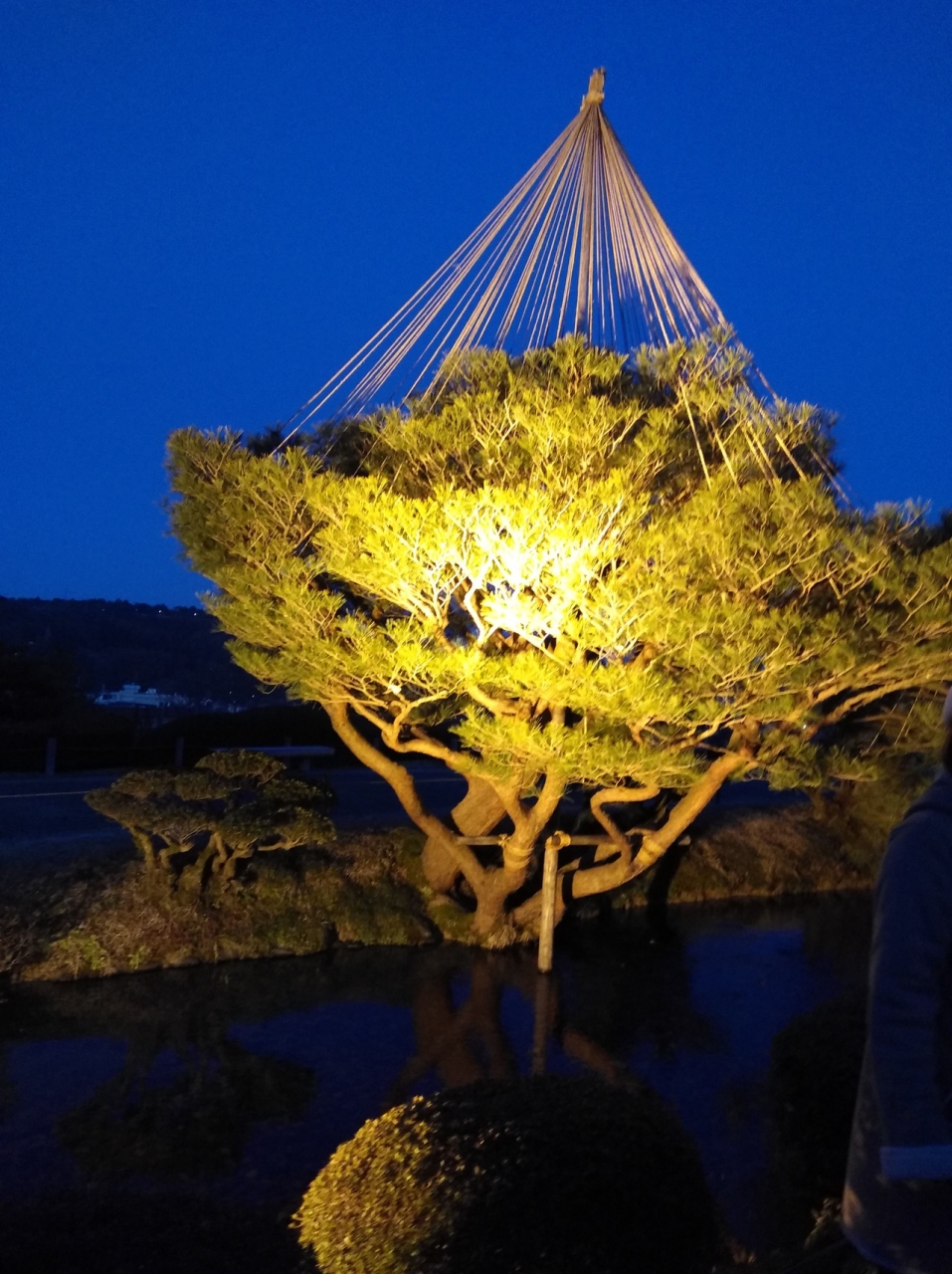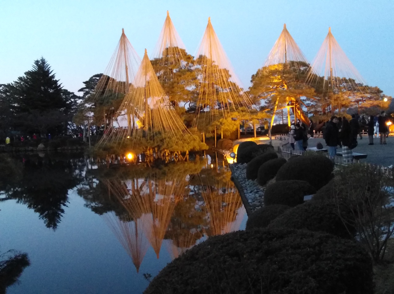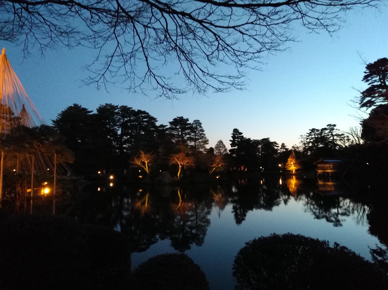 12/31:お昼過ぎについて、東茶屋街を散策し、暗くなってから兼六園へ。夜の兼六園を見学