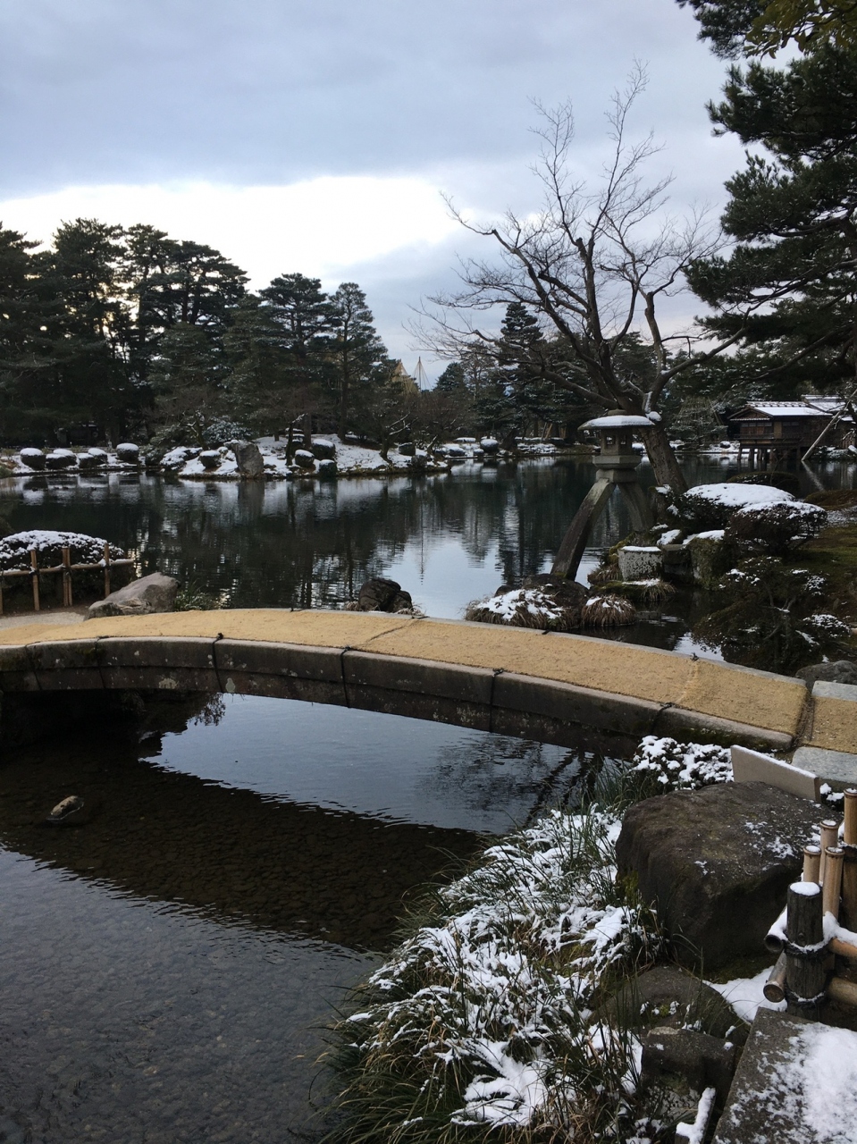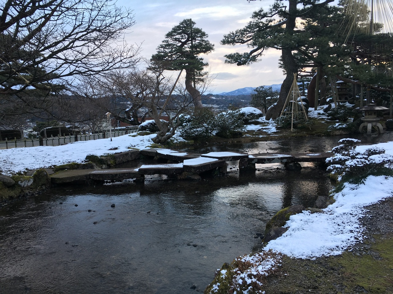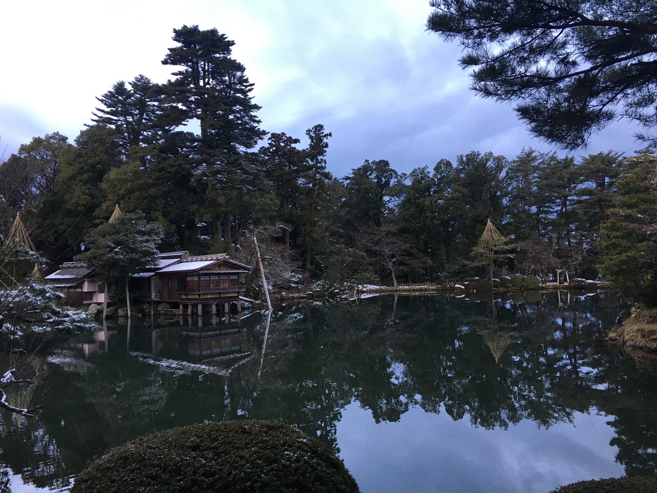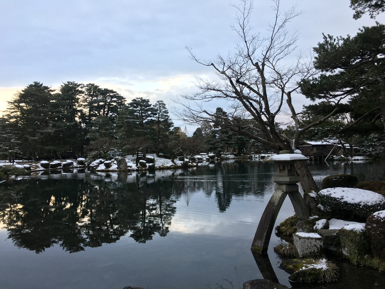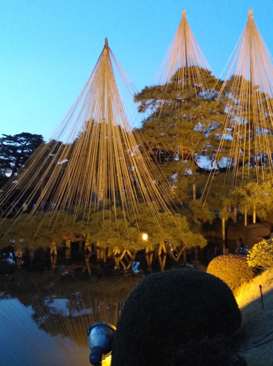 12/31:お昼過ぎについて、東茶屋街を散策し、暗くなってから兼六園へ。夜の兼六園を見学