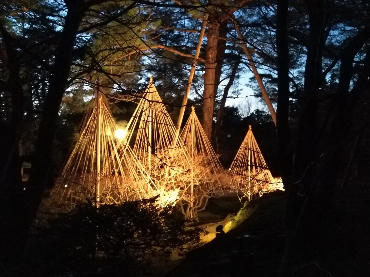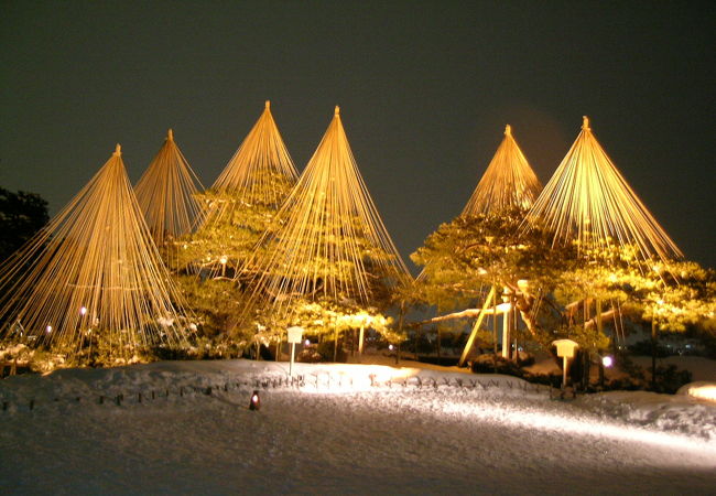 年に数回ライトアップが行われる期間があり、特に冬は雪吊りが施されてとても美しいです。  閉じる