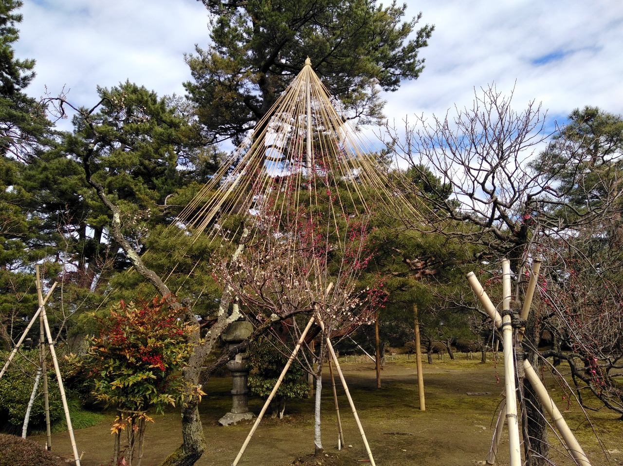 ライトアップで雪吊りや水面に映る美しい景色を楽しみましたが、翌日は快晴の青空のもと広大な敷地を散策。違う入り口から入ると景...  続きを読む色も違って見えたり、梅が咲く庭園に春を感じながら散策でき至福の時でした。