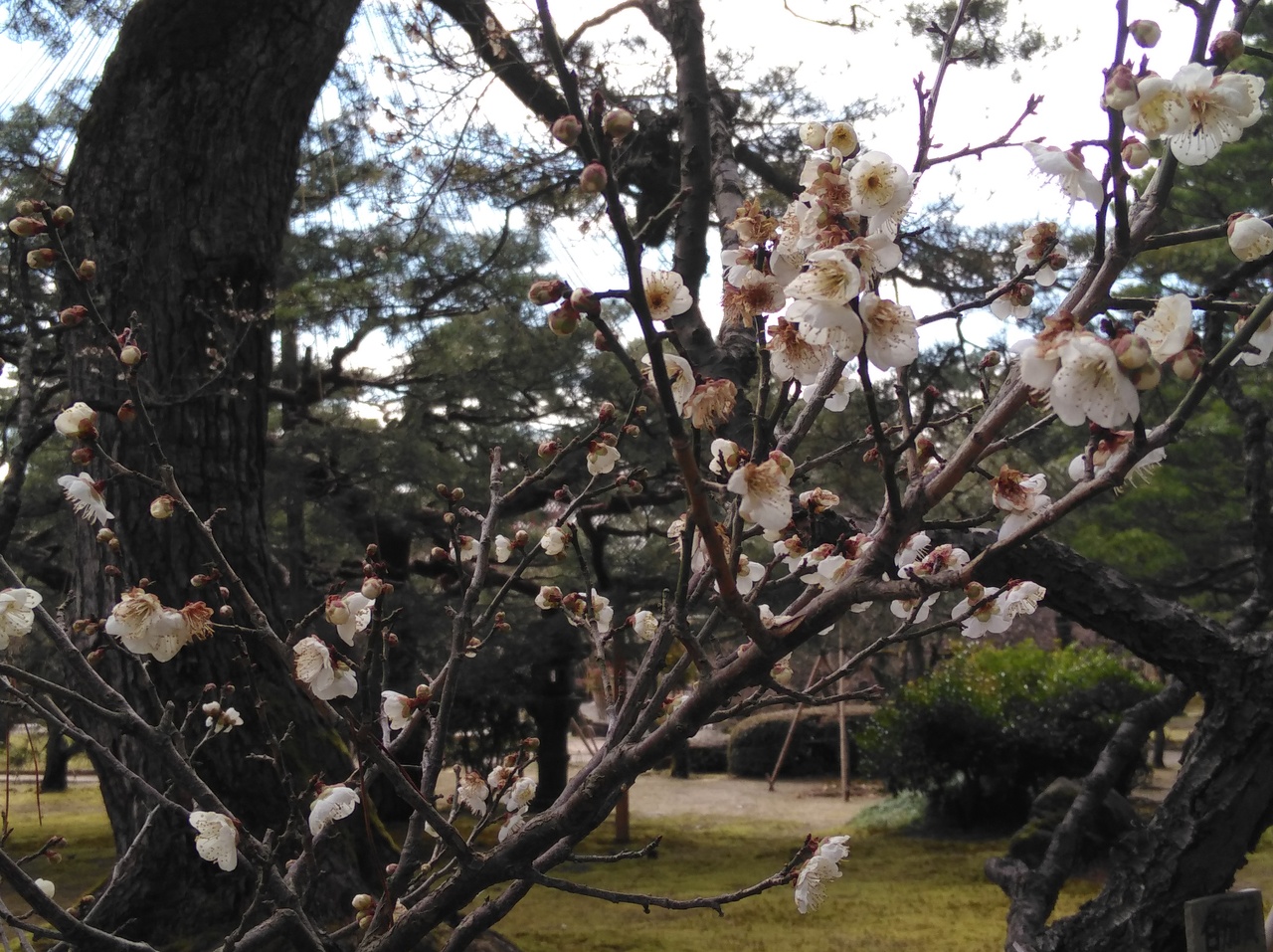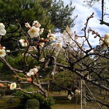 梅園には沢山の梅の木が植えられ、場所により咲いている木もありました。