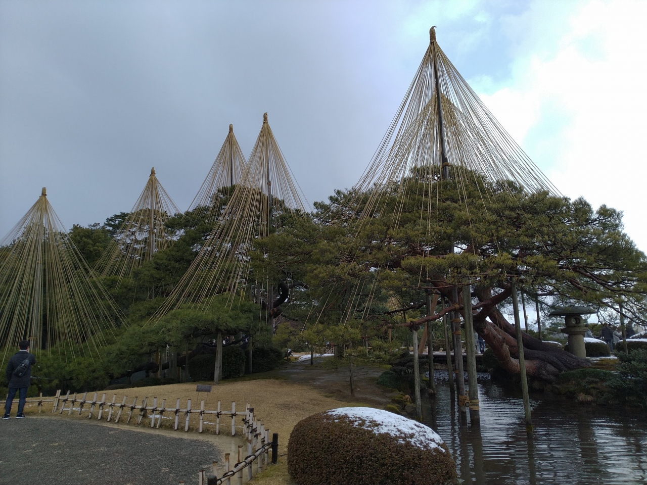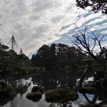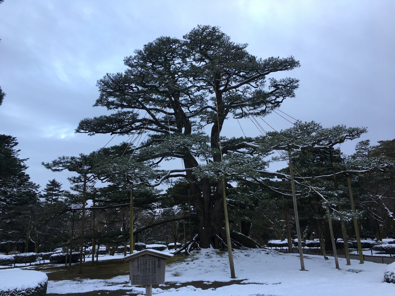 兼六園内で最も枝ぶりが見事な黒松です。霞ヶ池に面して立っています。13代藩主・前田斉泰が、近江八景の一つである琵琶湖湖畔の...  続きを読む唐崎から種子を取り寄せて育てたものです。雪吊りが施されており、風情のある景色が観られました。  閉じる