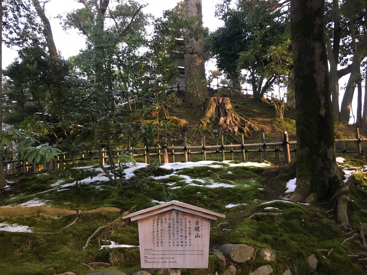 兼六園の霞ヶ池を掘り広げたときの土を利用して造られた山です。山頂まで続く通路が螺旋状に造られており、その形がサザエに似てい...  続きを読むることから栄螺山と呼ばれています。山頂には石塔と避雨亭があります。山頂からは霞ヶ池が一望でき、景色が綺麗でした。  閉じる
