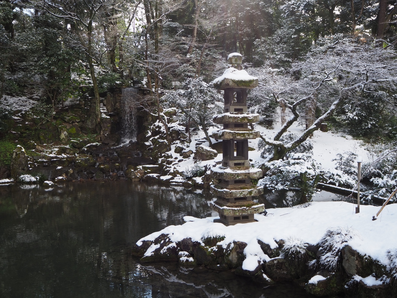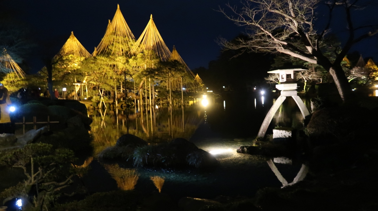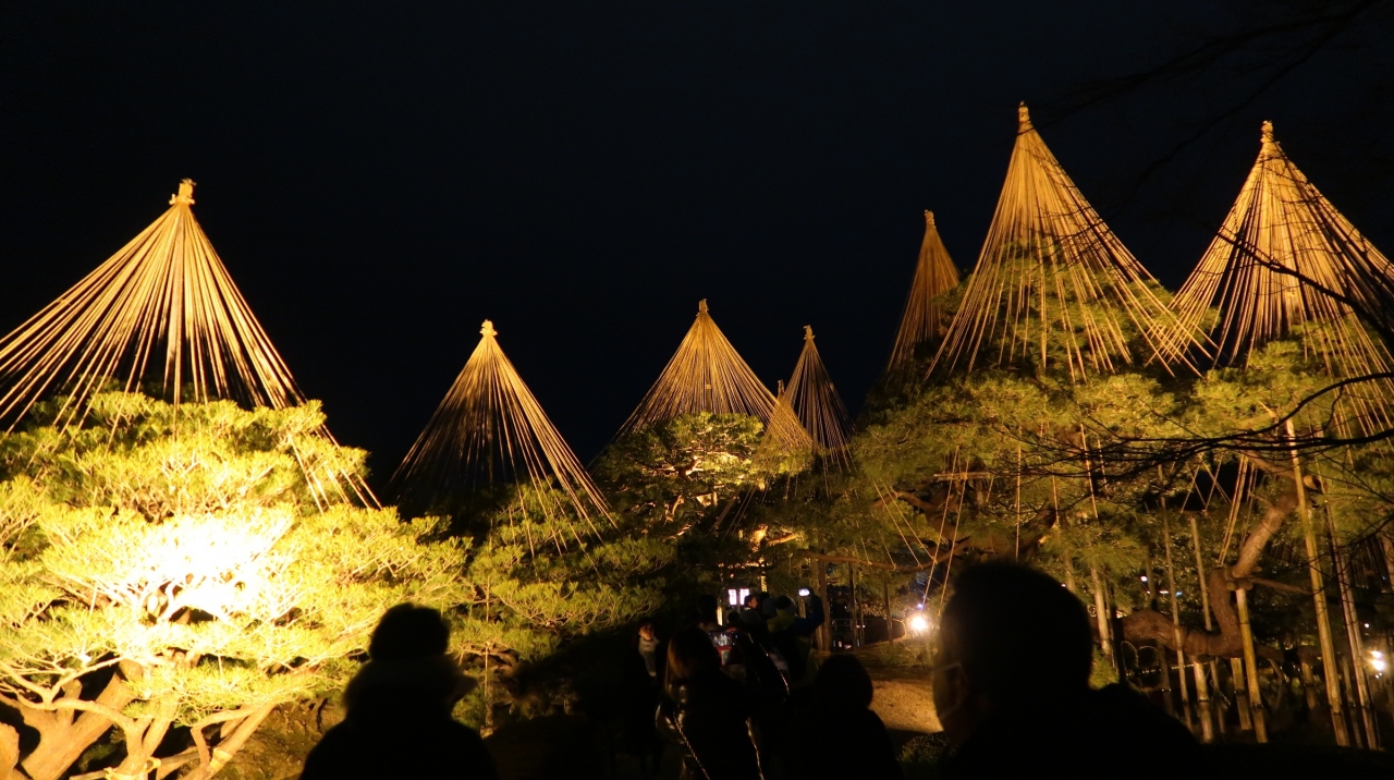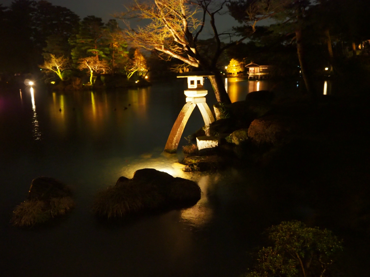 12/31:お昼過ぎについて、東茶屋街を散策し、暗くなってから兼六園へ。夜の兼六園を見学