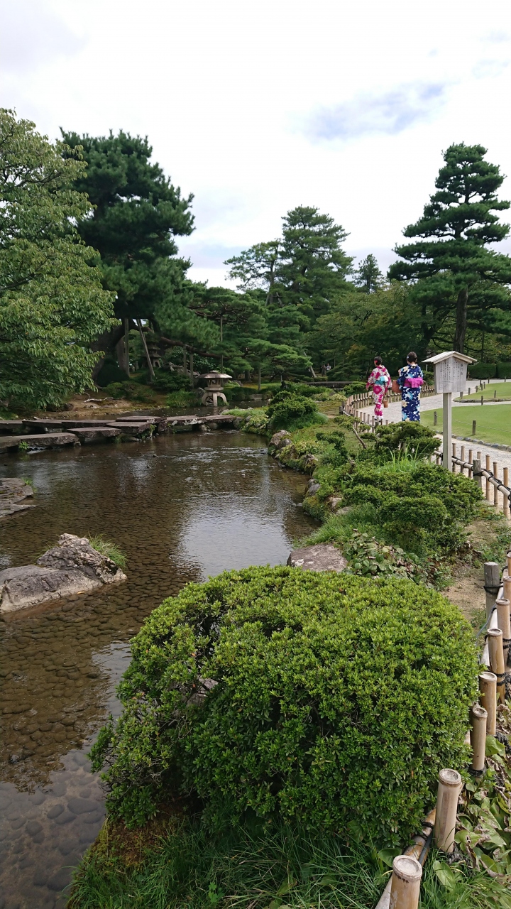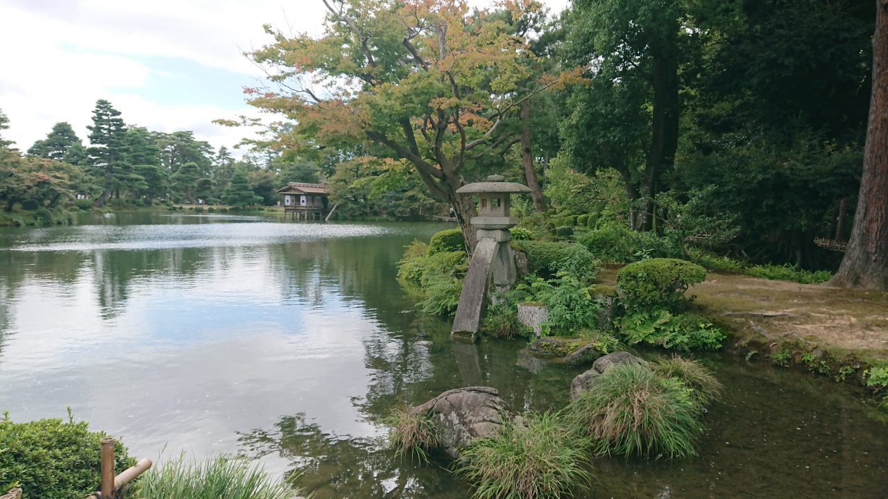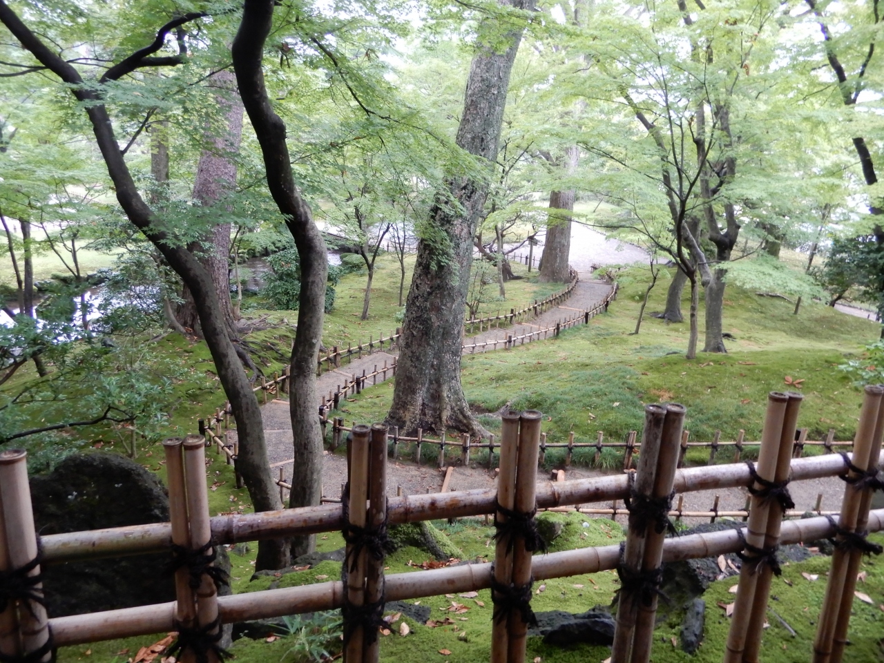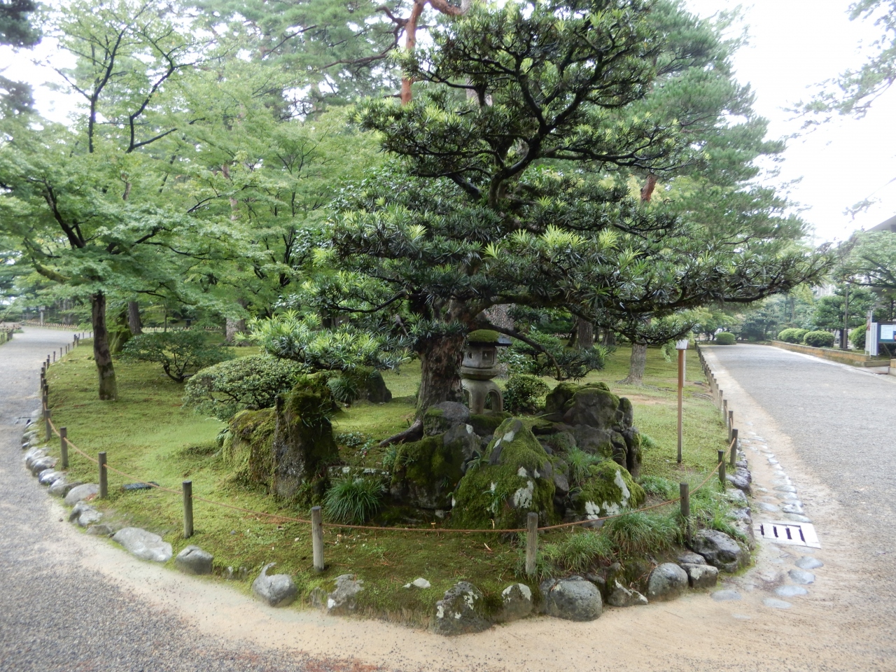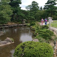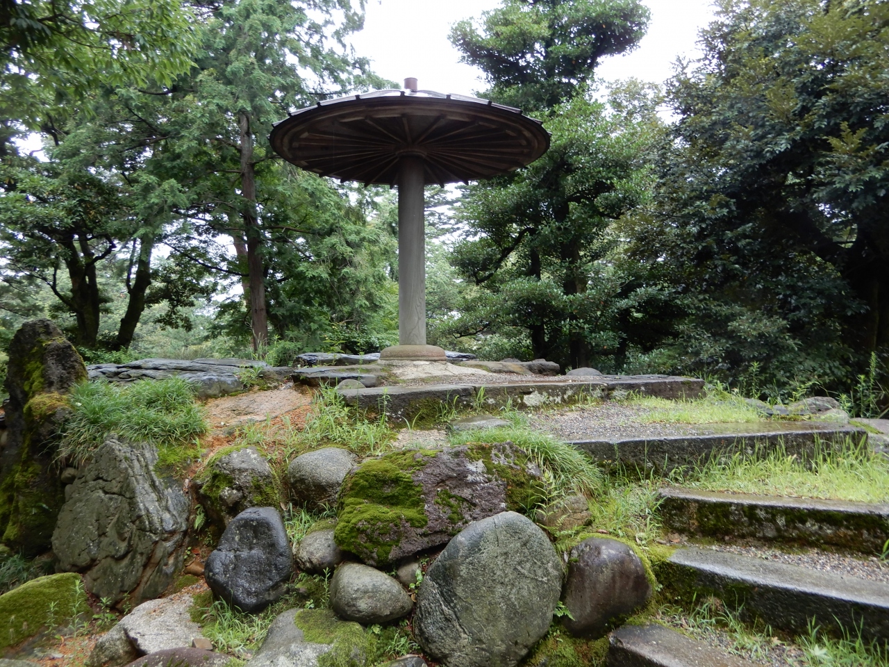 金沢は雨が多いので、兼六園にもいくつも東屋があるようです。