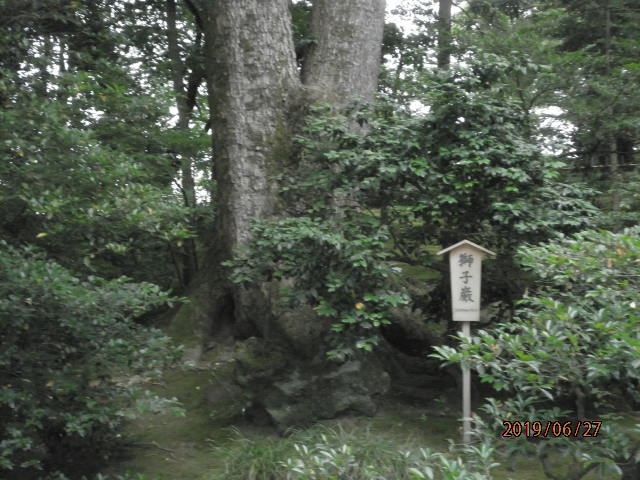 虎石、龍石とともに兼六園の三名石といわれています。獅子巖という看板はあったものの、木の根元にあり、それほど大きくないのでみ...  続きを読むすごしてしまいそうです。獅子の頭あたりに、枝が茂ってきているので、少し隠れている感じになっていて残念でした。  閉じる