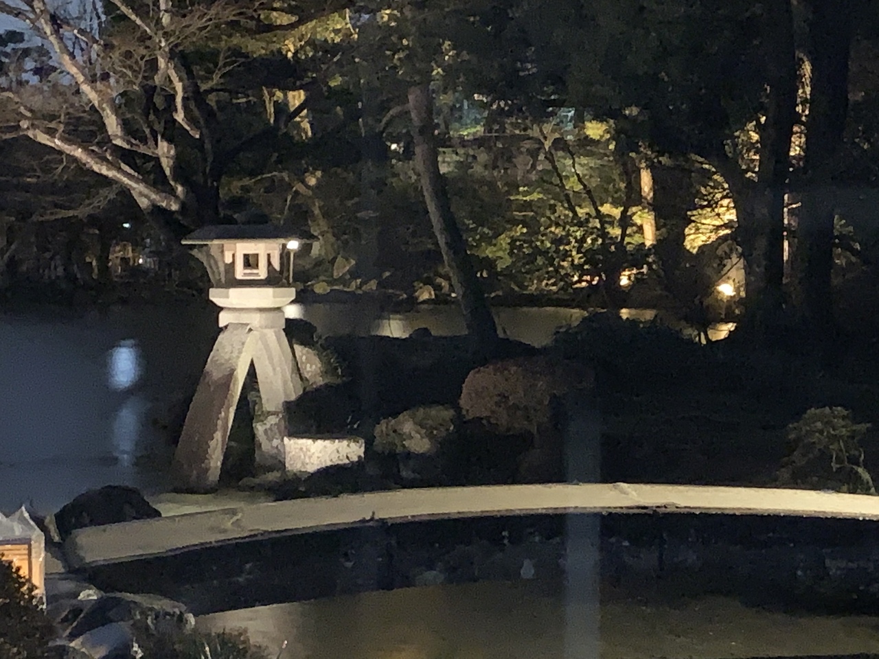 雪とライトアップのコラボを見にきたのに、この日は18時ごろまで雨&気温が高かったため雪がなかったのが残念でした。しかしそのためか人は少なく、落ち着いて庭園を回ることが出来ました。昼間の見学もいいですが、夜間もおすすめです。  閉じる
