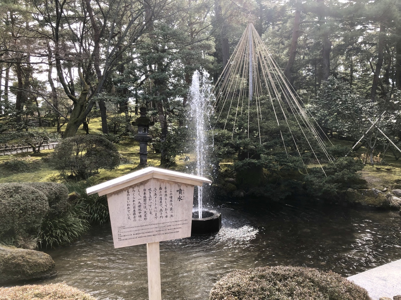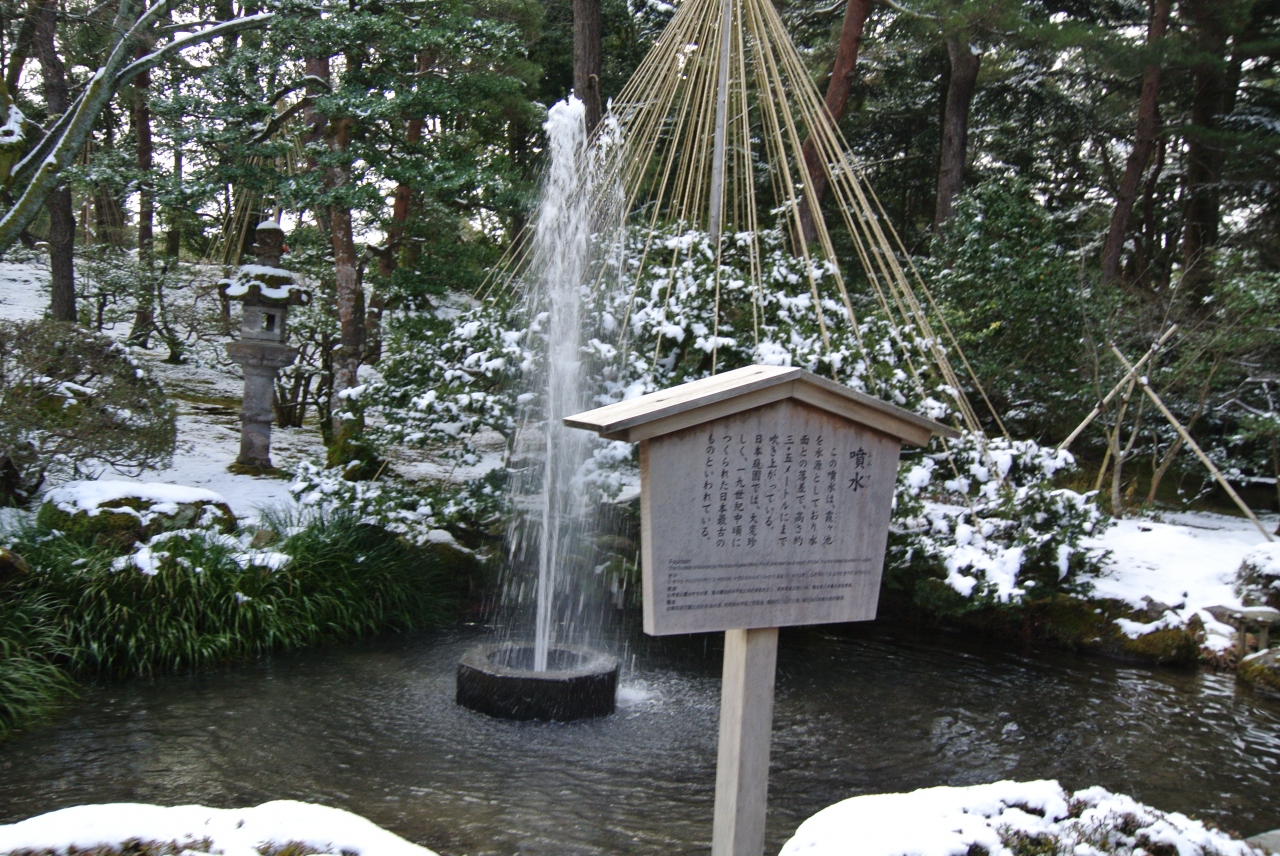 江戸時代の日本庭園に噴水があるのは意外でした。日本庭園の中でここだけ少し西洋風。自然の水圧を利用していて、噴水の一番上の部...  続きを読む分の高さが霞ヶ池の水面と同じなのだとか。詳しくはわかりませんが、辰巳用水の水を金沢城内で噴出させたのと同じ原理なんでしょうか?噴水自体は小さいシンプルなものですが、とても興味深いですね。  閉じる