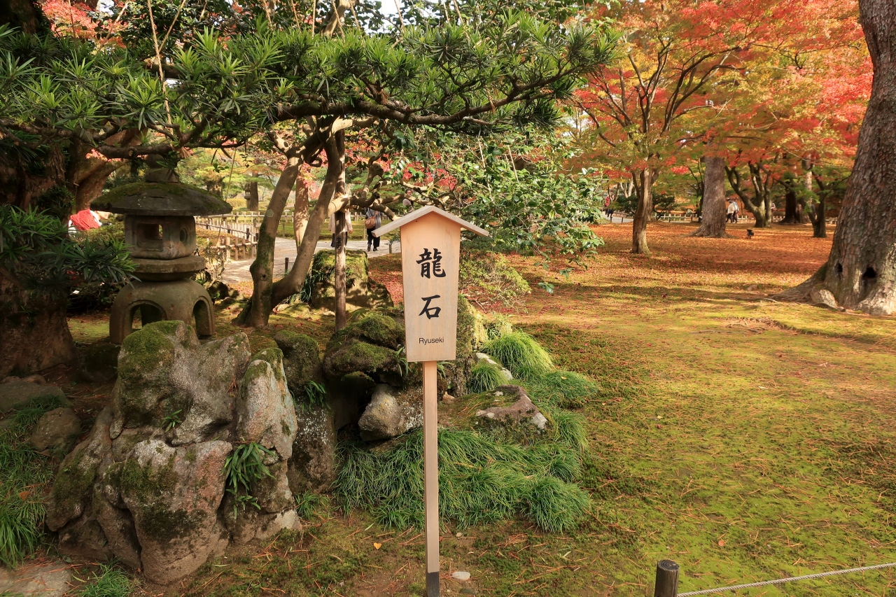 鶺鴒島近くにあり、徽軫灯籠そばの「虎石」、黄門橋たもとの「獅子巌」とともに兼六園の三名石に数えられている。現地の看板には...  続きを読む「龍石」と書いてあり、まるで龍が口をあけて水を吐いているようにも見える。近くにあるツバキは「龍石の椿」と呼ばれ、開花がニュースになる名木だ。三つの石ともに兼六園の守り神で、金沢城玉泉院丸庭園にあったものを現在地に移したと伝えられている。  閉じる