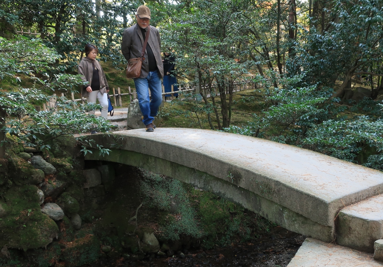 現世と浄土をつなぐ橋を題材にした謡曲「石橋」に基づいて造ったという橋。橋の名の黄門は中納言の異称だが、これは加賀藩2代藩...  続きを読む主前田利常を指すという。1枚の石だが2枚の石が重なって見えるように掘り込んで立体感を演出している。そり橋のうえ、あまり幅が広くないため、渡る時はちょっとおっかなびっくりだ。  閉じる