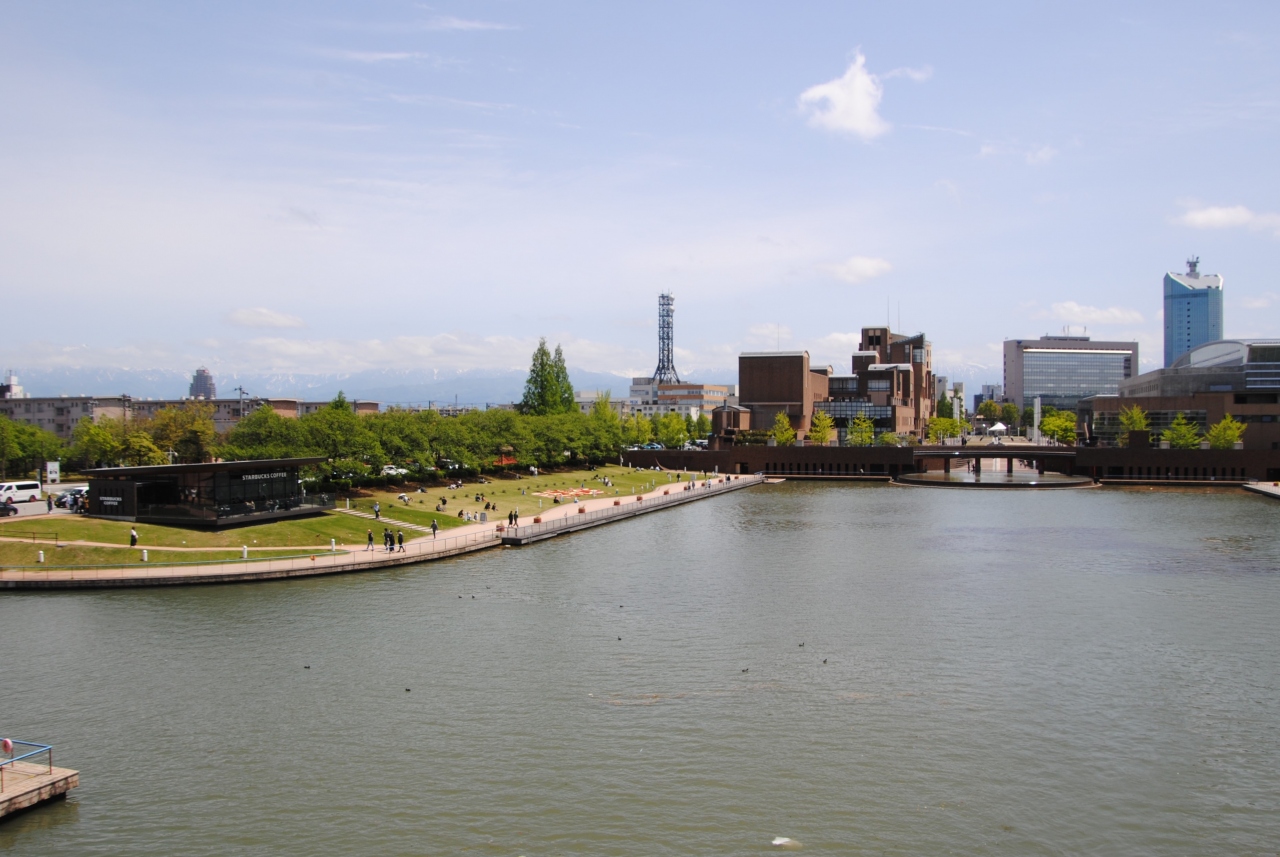 東京・大阪・名古屋など、歴史ある大きな街は水運が街の発展に寄与するため海沿いにある事が多いですが、冬の日本海の厳しさが影響... 続きを読むするのか北陸地方の新潟・富山・石川・福井は県庁所在地は新潟以外は何れも(少し)内陸部に在ります。 しかしトラックが物流の中心の現代ならばいざ知らず水運は街の発展に欠かせない物でした。そこで富山と岩瀬の間に運河を造り「富岩運河」として富山の発展に貢献してきました。そして物流の主役がトラックに代わり、富岩運河は役目を終えましたが、埋め立てるのではなく「環水公園」として整備されました。 富山市中心部からも程近い場所を埋め立てて開発するのではなく公園とするのは様々な意見が有ったのでしょうが結果は大成功と言って良く 富山市民の憩いの場となっています。 市街地から近いですし無料の駐車場もあります。 展望台もあり展望台から見る公園・富山の街・北アルプスは最高に美しいです。 旧運河を利用した観光船も就航しています 閉じる