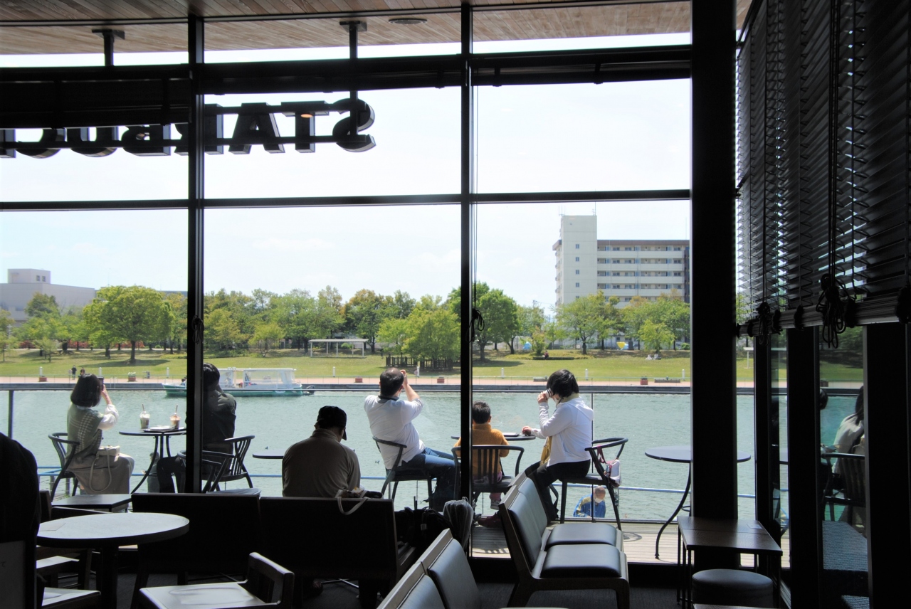 泉と滝の広場、天門橋、景観が話題のスターバックスなど見どころも豊富な公園