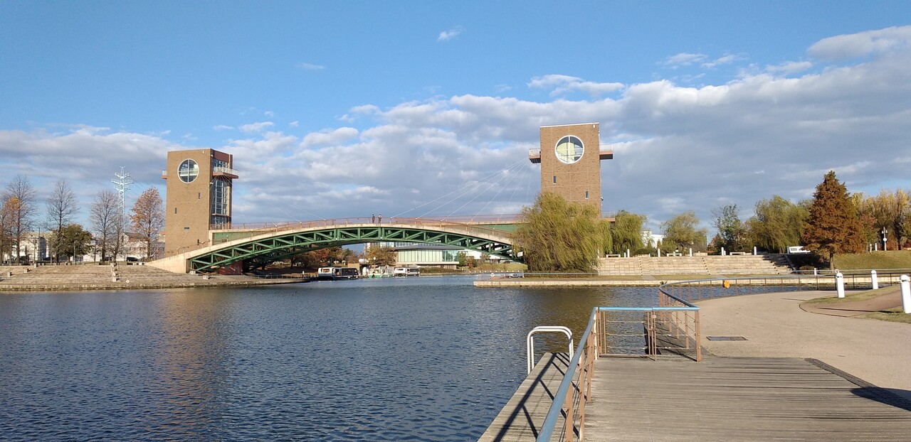 且つて運河の荷下ろし場等を改修して公園として整備、都市部に広がる美しい公園です