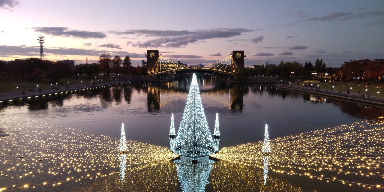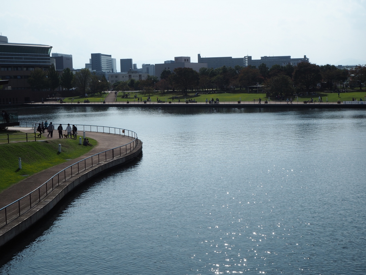 富岩運河環水公園は、富岩運河を囲むように広がる緑の美しい水辺空間です。芝生が広がる開放的な園内では、子供からお年寄りまで、誰もが心地よいひとときを過ごすことができます。