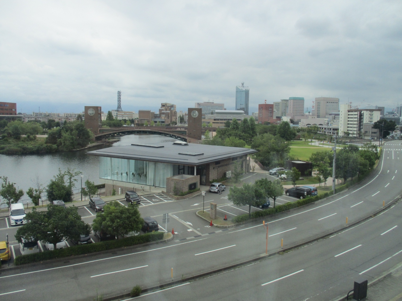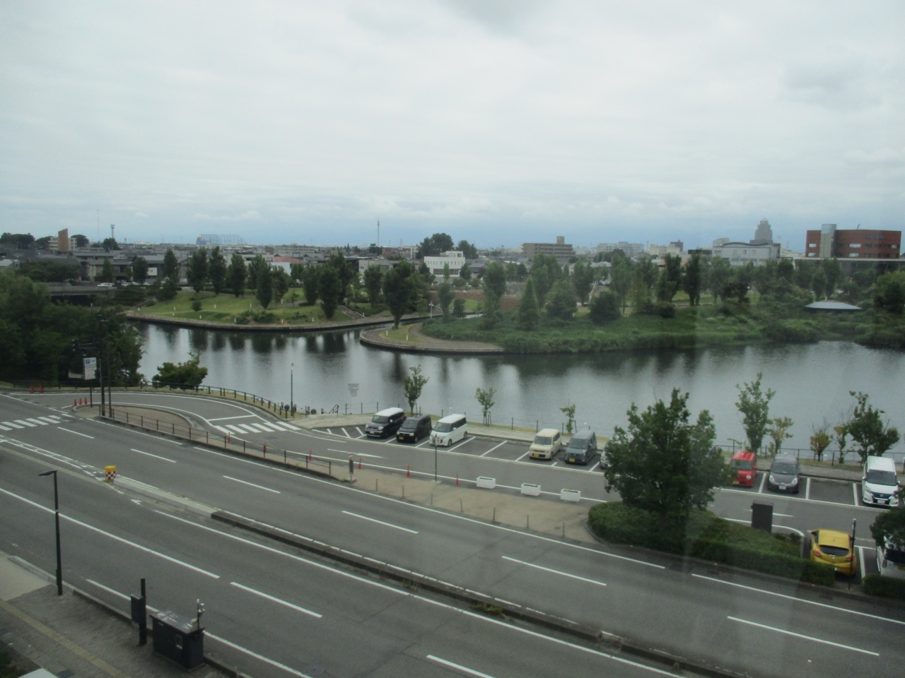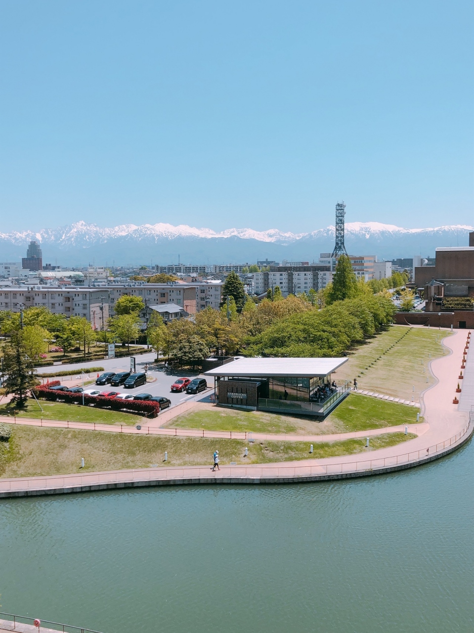美術館の屋上にある「オノマトペの屋上」から見えるはずの... 続きを読む立山連峰はあいにくの曇り空で見ることはできませんでしたが、美術館の前に広がる緑の富岩運河環水公園は良く見えました。
