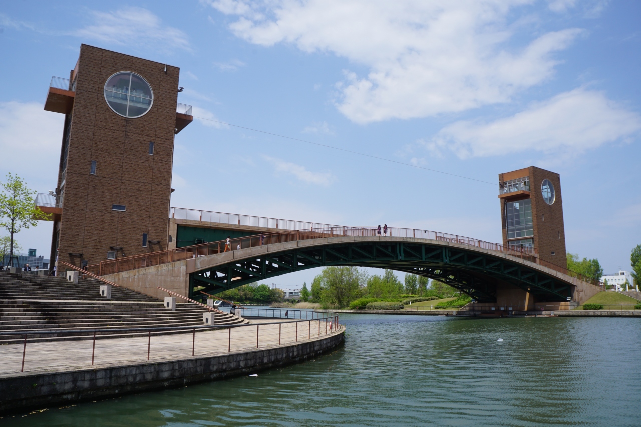 人工島「あいの島」には、「天門橋」(橋長:58メートル)が設置されており、橋の両岸に「展望塔」(塔高:20.4メートル)が配置されています。