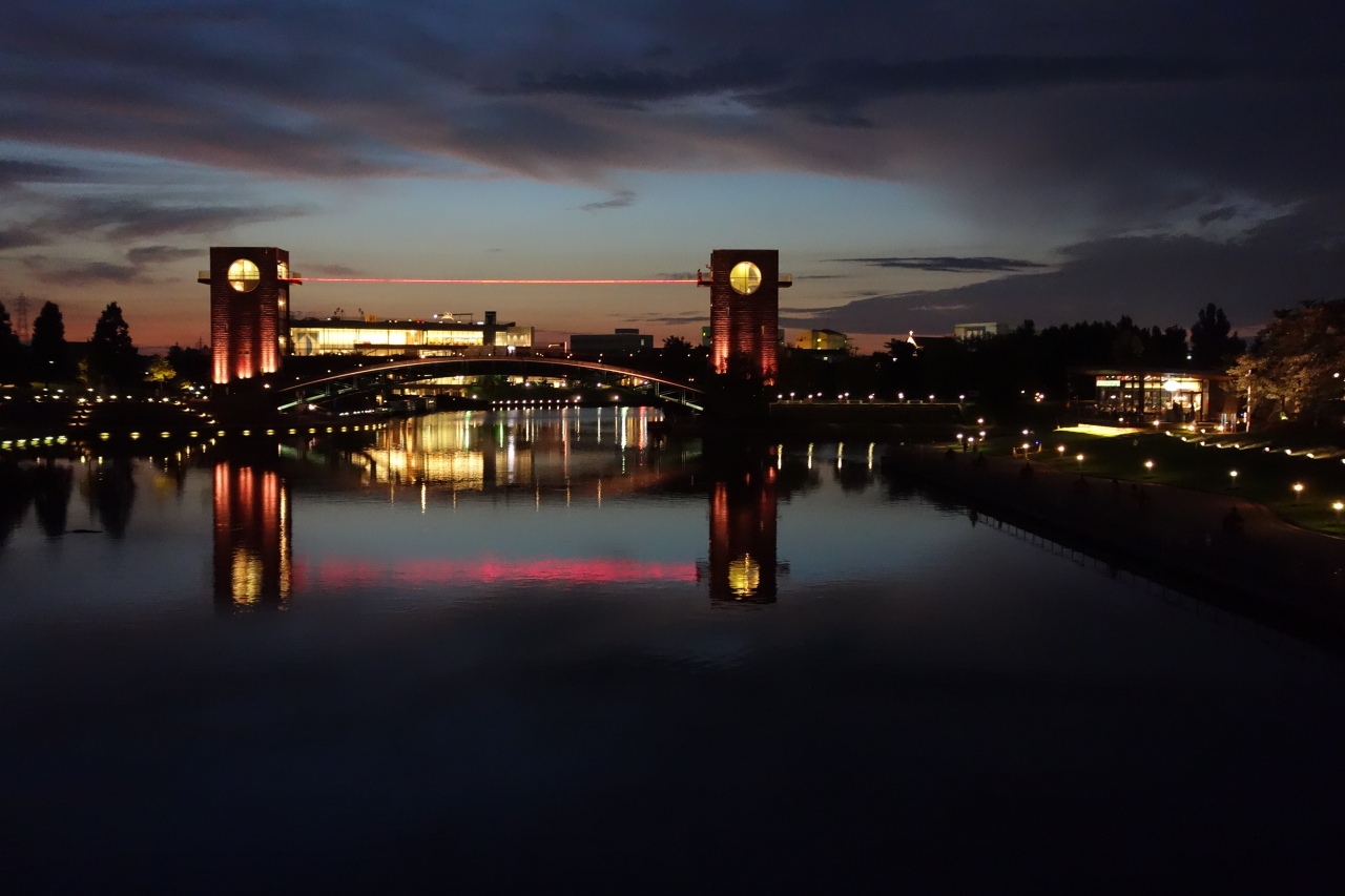 富岩運河環水公園は、富岩運河を囲むように広がる緑の美しい水辺空間です。芝生が広がる開放的な園内では、子供からお年寄りまで、誰もが心地よいひとときを過ごすことができます。