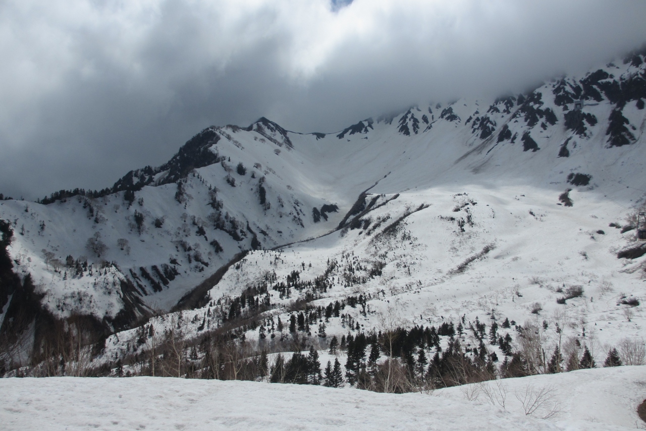 赤沢岳をはじめ周辺は険しい山々が連なります。