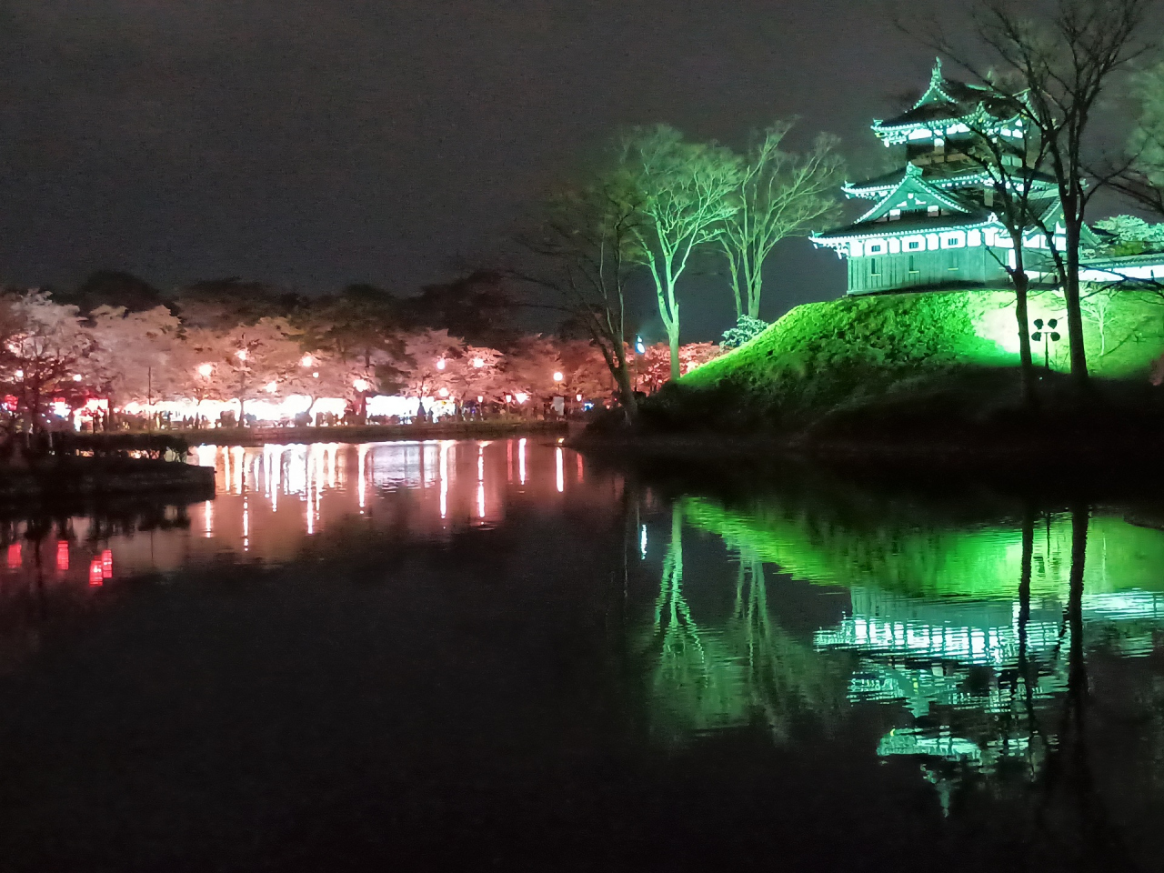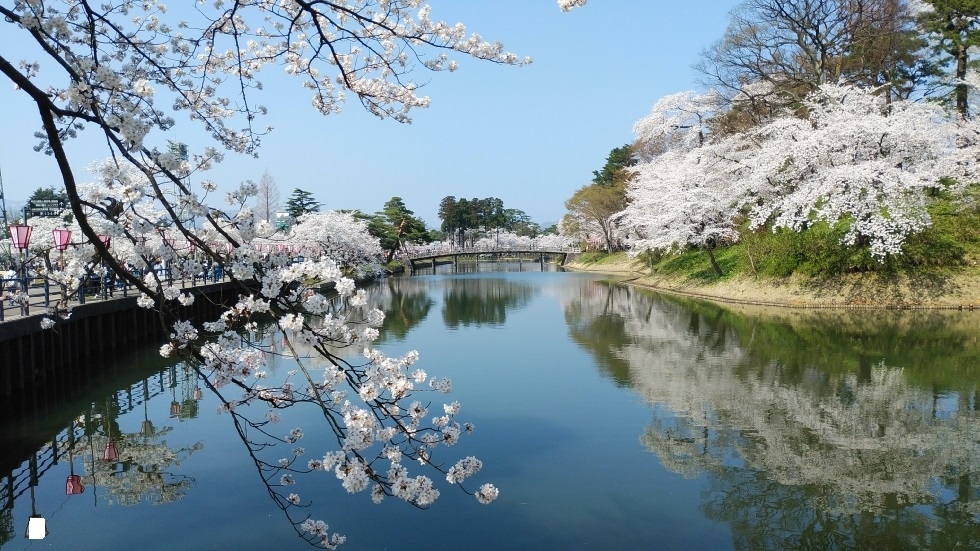 高田城址公園は、徳川家康の六男・松平忠輝公の居城として築城された高田城の跡に整備された公園で、全体が新潟県の史跡に指定されています。 現在の公園の地形は、旧陸軍第十三師団が入城する際、明治40年(1907年)に土塁の大半を崩して堀を埋める工事が行われたことによって出来たものとされています。 公園の面積は約50haあり、市街地の中心部に位置する公園としては、全国的にも有数の規模を誇っています。 園内には、復元された高田城三重櫓や歴史博物館、小林古径記念美術館、高田図書館、小川未明文学館(高田図書館内)などの文化施設、陸上競技場、野球場等のスポーツ施設、岩野勇三ブロンズコーナーやブロンズプロムナード、芝生広場や外堀をめぐる遊歩道などがあり、市民の散策や憩いの場となっています。 また、日本画の大家・小林古径の邸宅や、本丸と二の丸を結ぶ極楽橋も復元されています。 四季を通じてさまざまな表情を見せる高田城址公園。春には桜の名所としても有名です。 公園やその周辺を含めて約4,000本の桜が咲き誇り、三重櫓とともにボンボリの灯りに照らし出される美しさは、「日本三大夜桜」のひとつに数えられています。 桜の開花に合わせ、毎年「高田城址公園観桜会」が開催されます。(3月下旬~4月上旬) また、夏にはお堀一面を埋め尽くす蓮を見ることができます。その規模と美しさから、「東洋一」と称されており、こちらも毎年「高田城址公園観蓮会」が開催されます。(7月中旬~8月下旬)