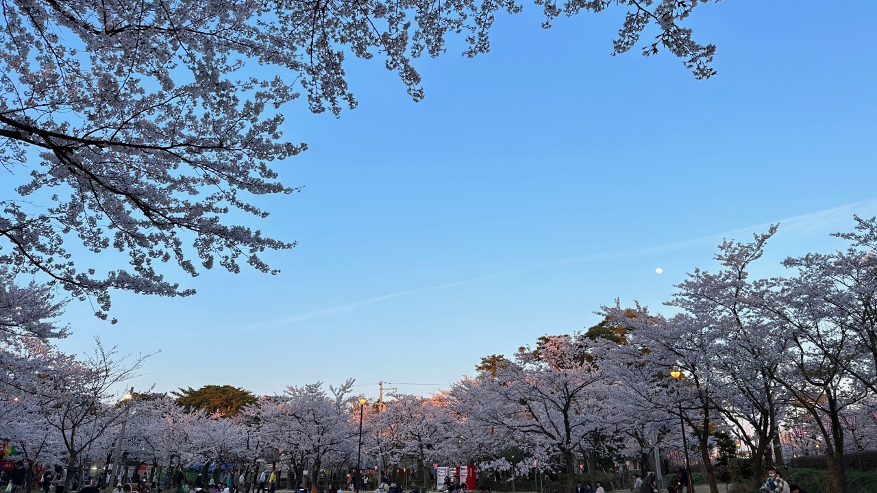 桜の名所として有名な公園ということもあり、当日は沿海の至る所で桜が綺麗に咲いていました。