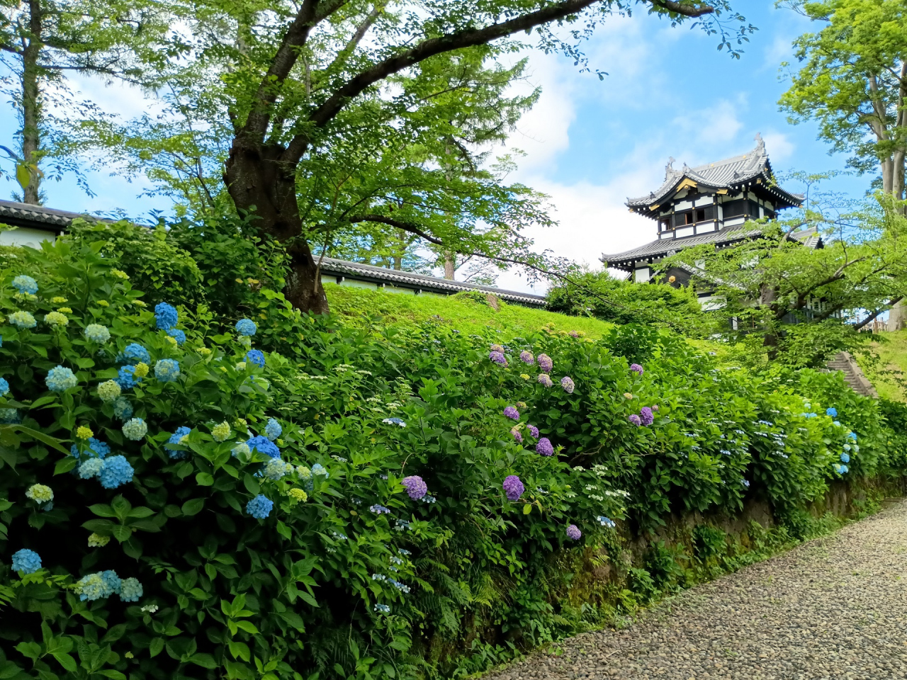 日本三大夜桜のひとしとしれ知られる高田学校城址。旧城内・本丸には大学付属の中学校がその敷地の多くを占めている。そんななか「... 続きを読むお城」としての威厳を保っているのは1993年に復元された三重櫓だ。他にもお堀、外堀も残っていて桜が咲く時期には多くの人たちを呼び込んでいた。 私達が訪れた時には紫陽花がきれいに咲き誇っていて桜の時期とは違った雰囲気を醸し出していた。 閉じる