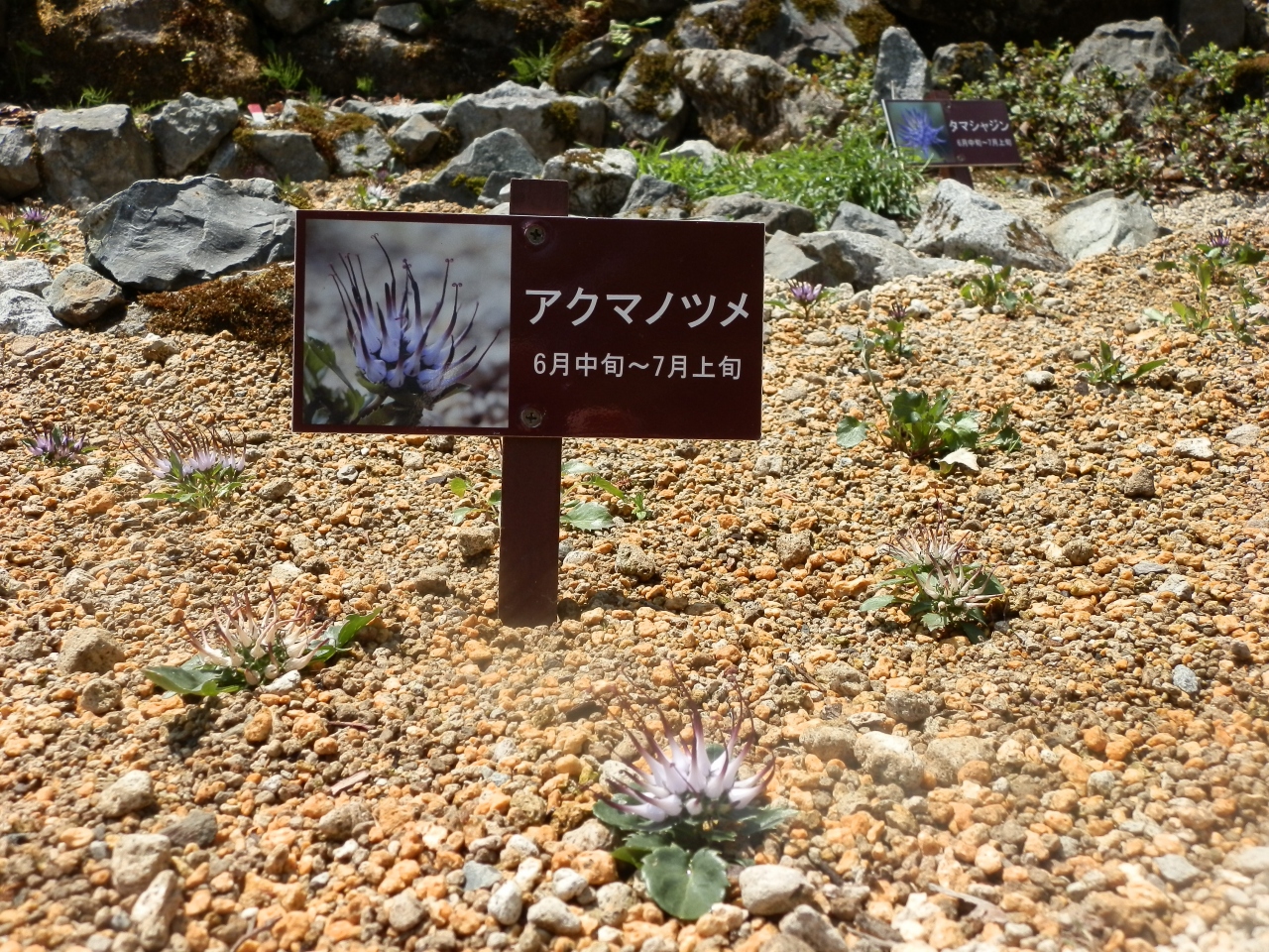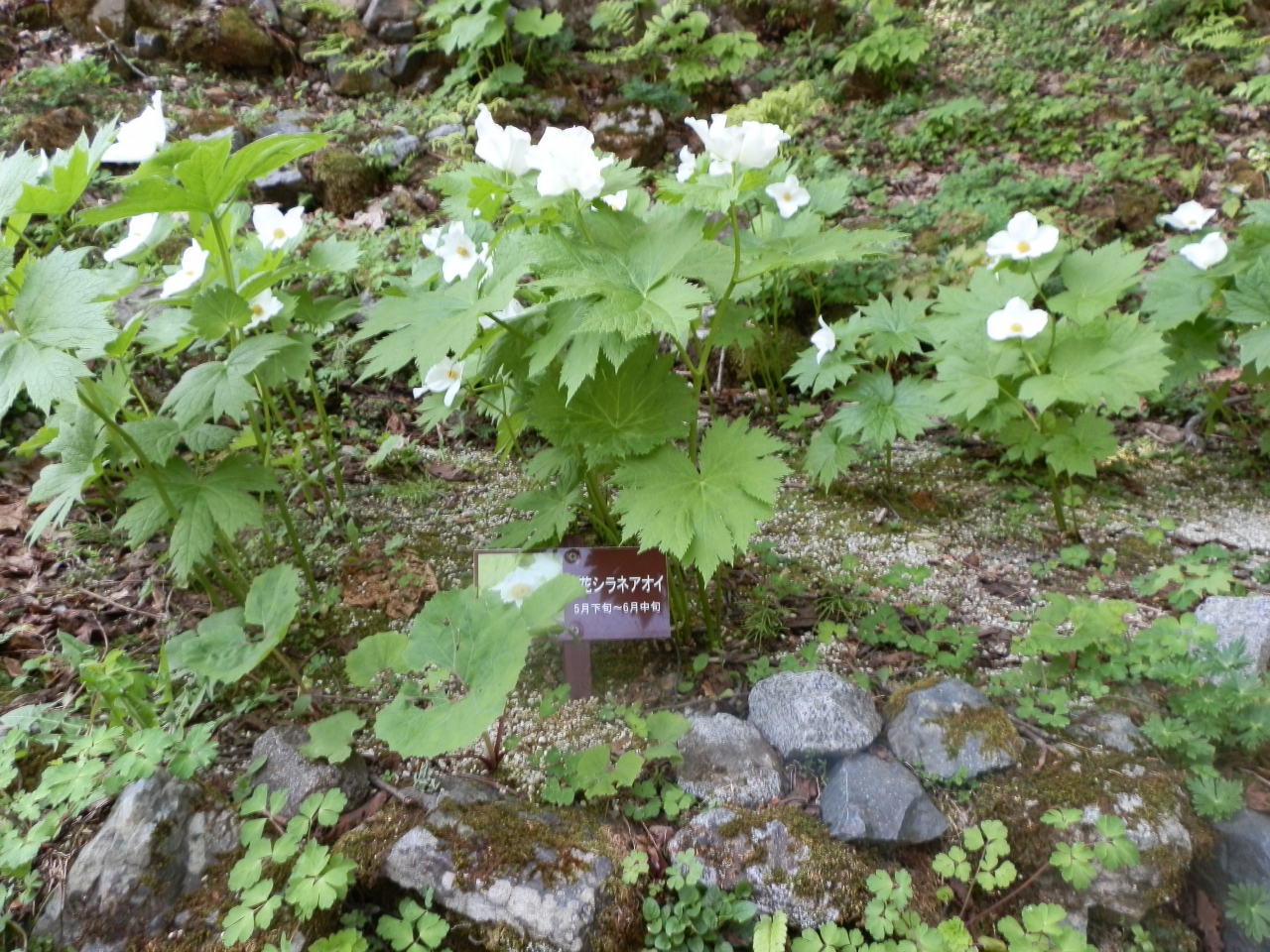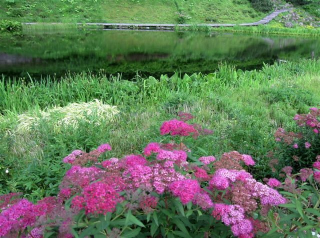 山の斜面を利用した、箱庭だった。1区画は狭かった。6月初旬ということもあり余り花は咲いていなかった。係りの人が植物園を整備している最中であった。目的の一つエーデルワイスを見る事は出来ず残念。7月に入って来るべきだった。帰りはバスに乗らずロープウェー駅まで歩いた。池の淵を歩く散歩道も整備されていた。町を歩く服装で若い