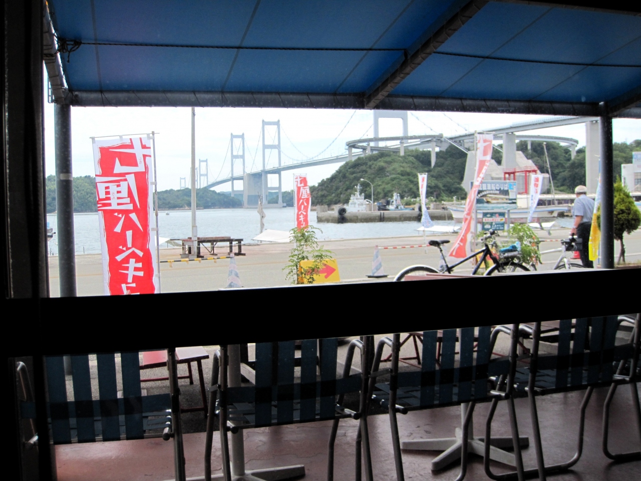 しまなみ海道でのサイクリングで小休止に利用させてもらいました。今治から来島海峡大橋を渡ったところにあります。ここの売りはセ... 続きを読むルフで新鮮な魚介類を買ってその場で焼いて食べられるということ。私たちのグループは9月の上旬で暑い中、自転車をこいで来たので少しでも涼しい冷房の効いた店内で食べようという気持ちが勝り、暑い炎天下での浜焼きはパスしてしまいました。レストランでは海鮮丼を頼みましたがやはり、新鮮で非常に美味しかった。ここでも刺身がコリコリとした食感で関東の魚にはないです。さすがは瀬戸内海の魚!目の前は船着場となっており、海が目の前、海峡の大橋も展望することができロケーションは素晴らしい。 閉じる