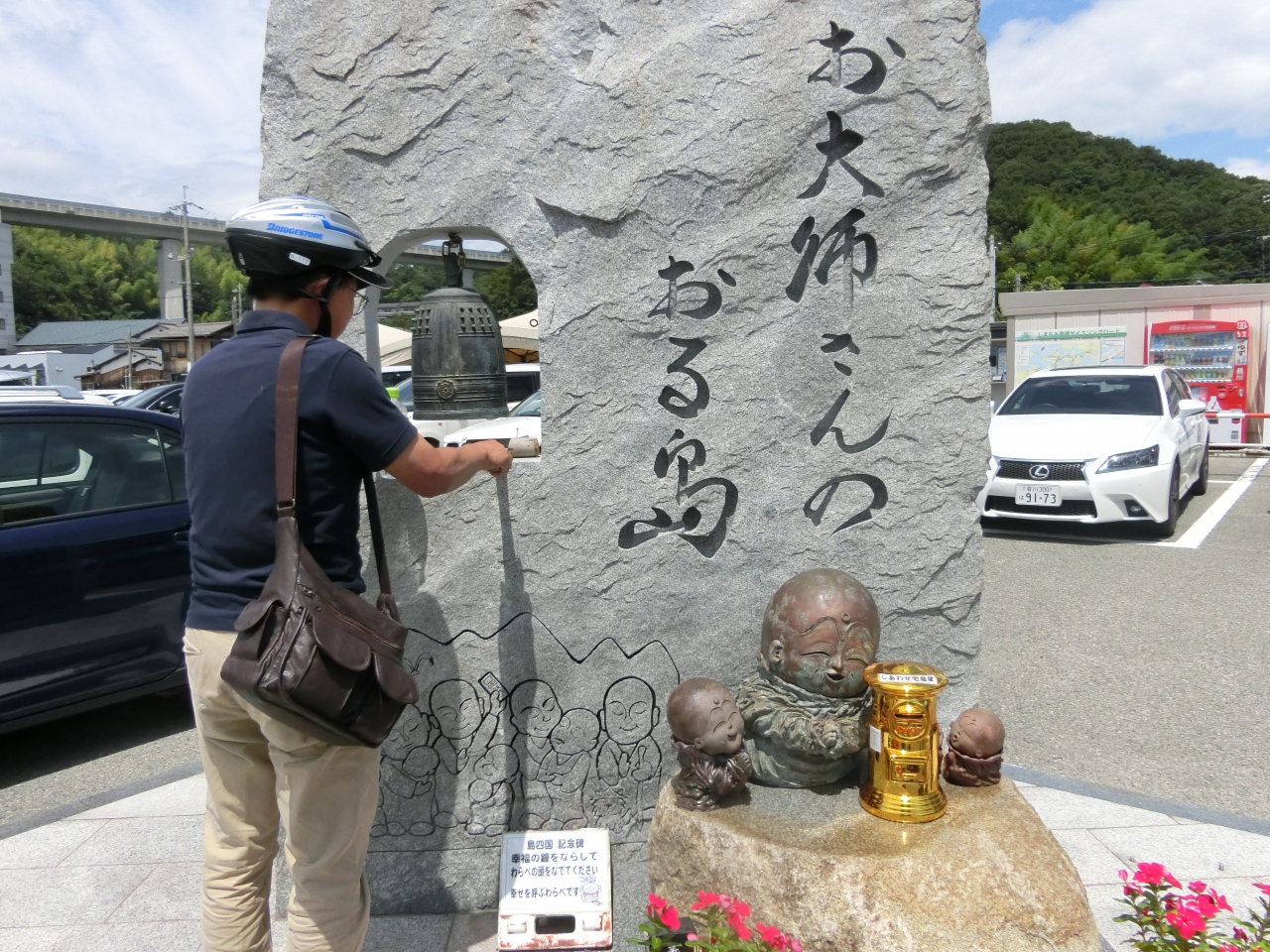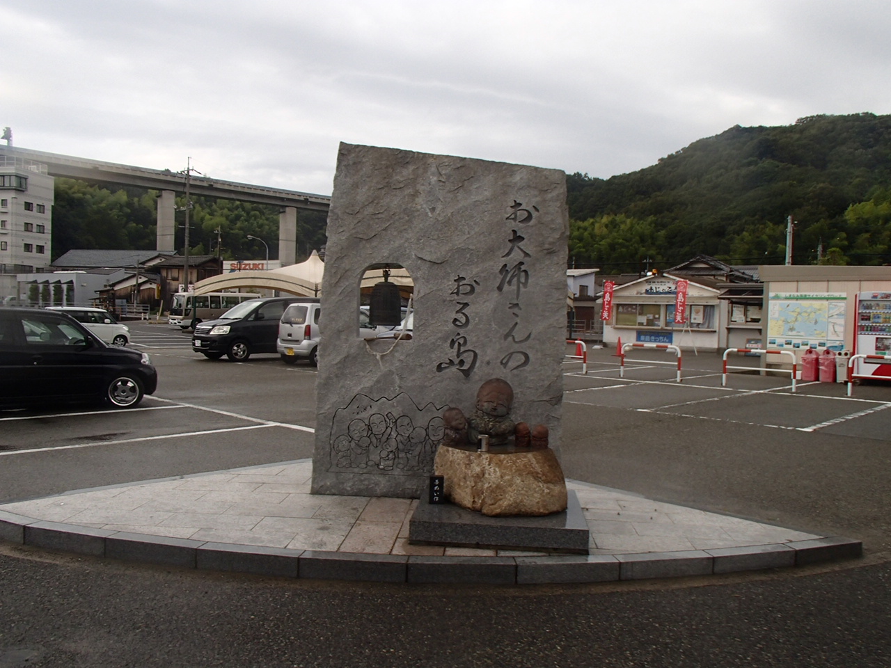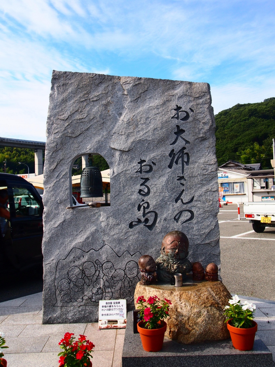 駐車場内にある“お大師さんのおる島”なる石碑が、ぜひ、寄ってもらいたい場所です。