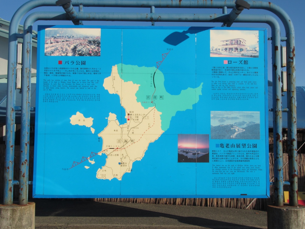 2013年8月より、車以外のアクセスは要注意。今治からの船は、運休中です。
