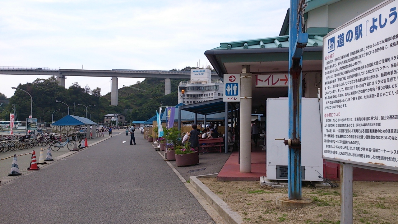 しまなみ海道をレンタサイクルでサイクリングした日に訪れました。 今治方面からのスタートで来島海峡大橋を渡って、大島に入ると... 続きを読むまず最初にあるお店(道の駅)が、このよしうみいきいき館です。 曜日や時間帯によっては混み合うんだろうな…と思いますが、私は平日にサイクリングし、15:30以降に立ち寄ったので、レストランも営業終了してて、海鮮七輪バーベキューも受け付けを終了しようとしていました。