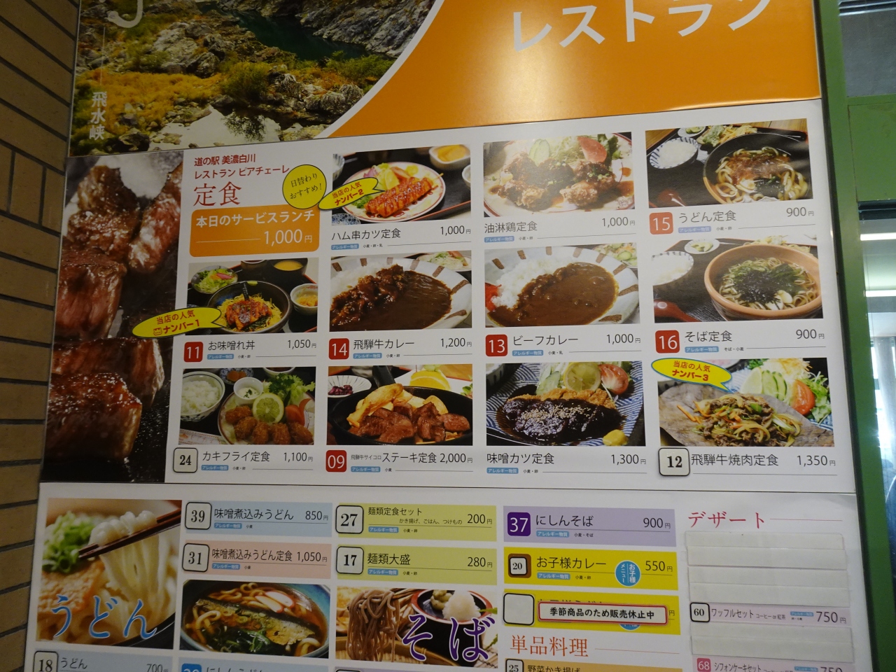 敷地内には、“美濃白川道の駅温泉”という日帰り温泉施設があります。私たちは下呂温泉に宿泊したので利用しませんでしたが、下呂温泉の泉質に近い良質なアルカリ性のお湯が特徴と言うことなので、下呂温泉に宿泊しない方は、この温泉を利用するのも良いと思います。利用料金は大人450円で、この種の施設としてはお安いです。