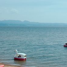 宍道湖沿いに建つ道の駅なので、2Fのテラスからの眺めがとにかく素晴らしい! 特にお天気の良い日は白鳥のボートに乗っている人たちも見かけます。 道を隔てた所には一畑電車の線路があり、本数は少ないですが、タイミングが合えば電車の写真も撮れます。