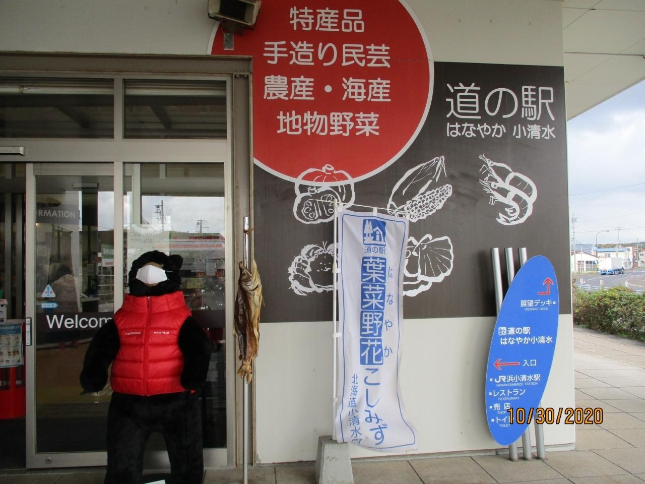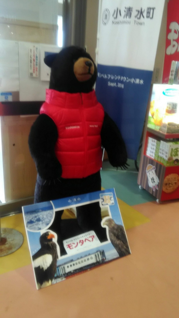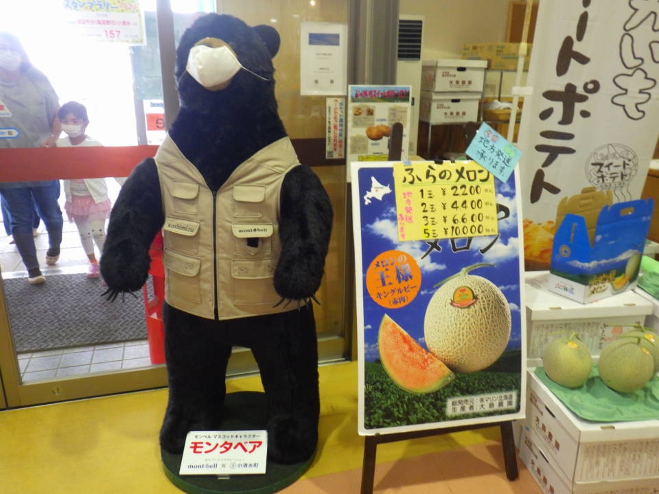 モンベル・オホーツク小清水店がすぐお隣にあるので、入口では、モンベルのダウンジャケットを着た熊が出迎えてくれました!