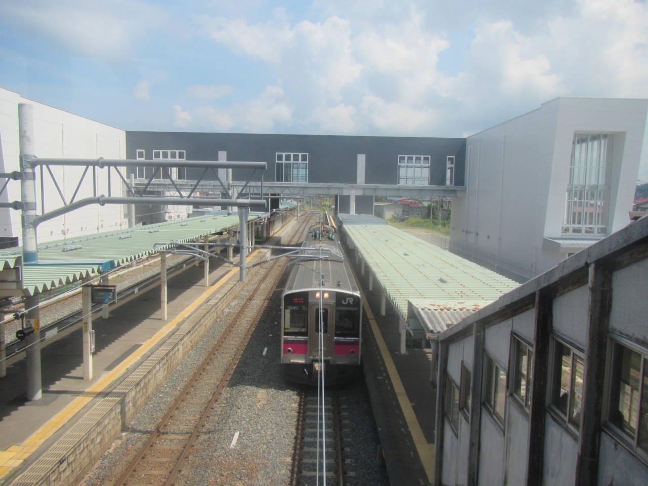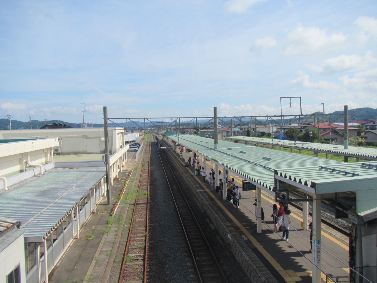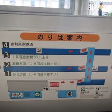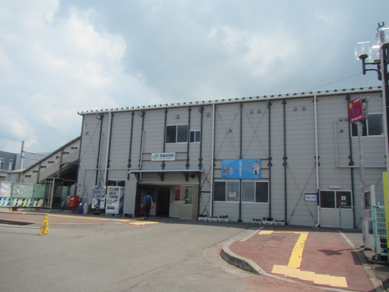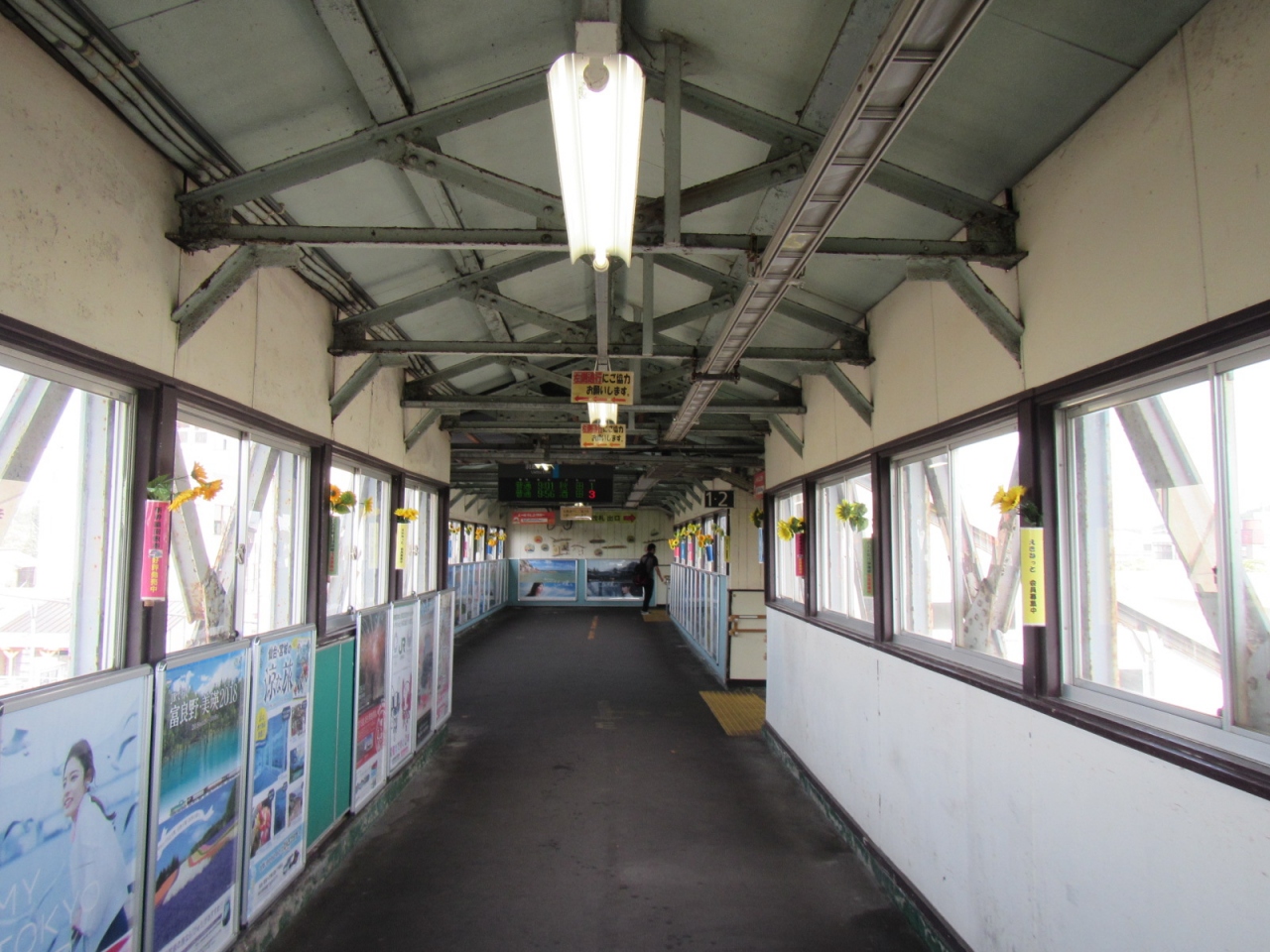 羽越線、由利高原鉄道ともに、駅舎から跨線橋を渡ってホームへ移動せねばならず、駅舎側36段、ホーム側27段または29段の階段を登って列車に乗らなければなりません。