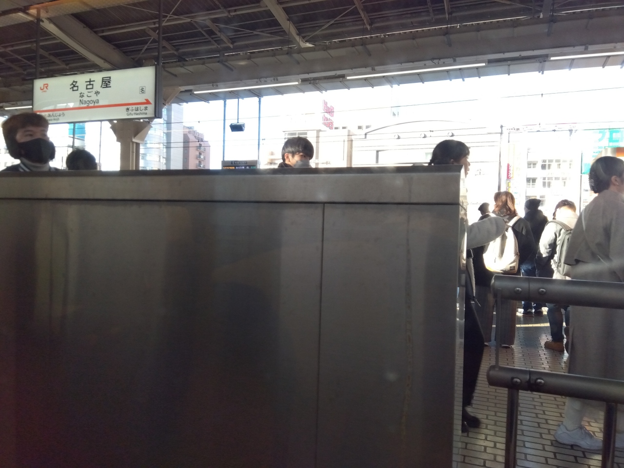いつ頃からか忘れましたが、見事にベンチが無くなりました。きしめんとキヨスクはあるのに。ホームの端の方に数席ありますが、よほど長い列車が来ないとそこまで行きません。まだこのホームにはベンチがあるだけマシですがヘルプマーク持ちにはちょっと辛いです。