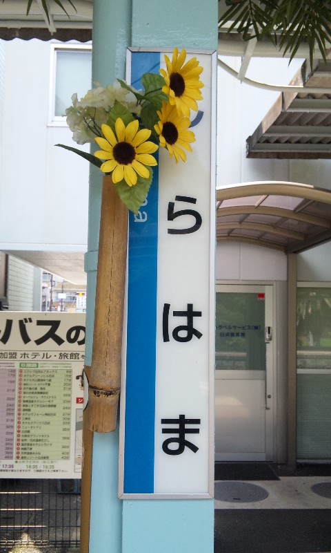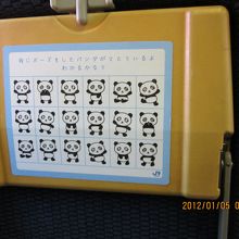駅の待合室の手作りざぶとん、一枚一枚に製作者の名前入り