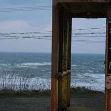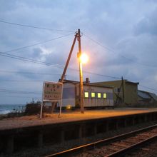 冬は荒れる海が間近の駅