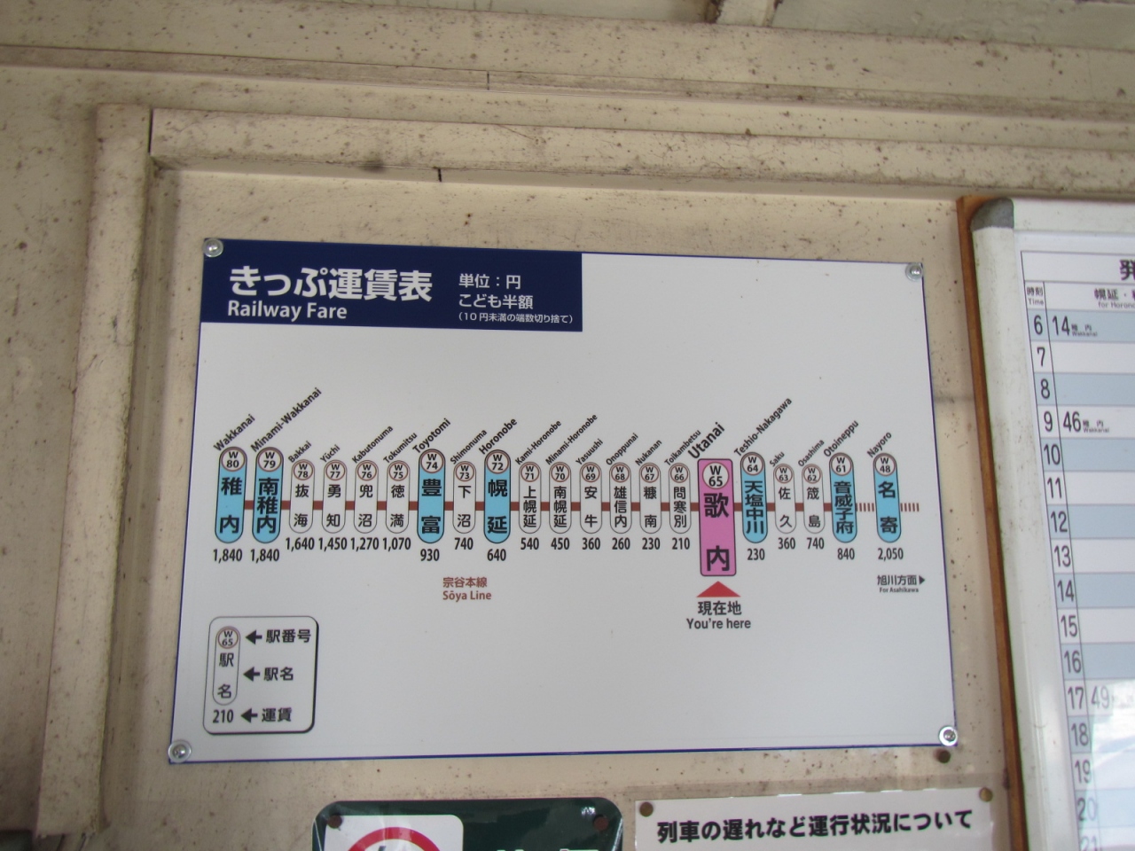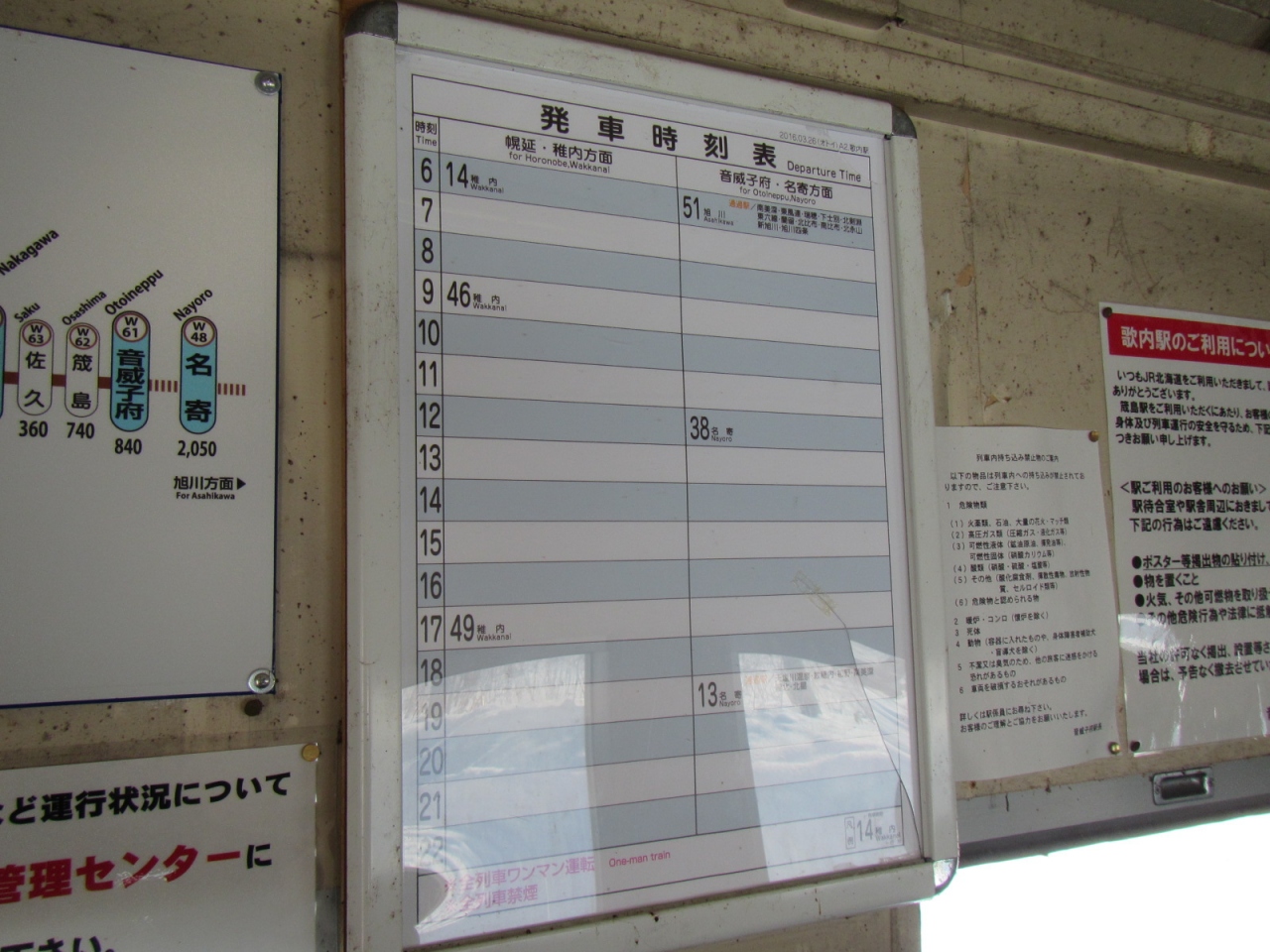 駅舎内には地域住民バスの時刻表も貼ってありましたが、歌内にくるバスはこちらも少なく、平日・土曜のみの運行など、こちらも不便です。