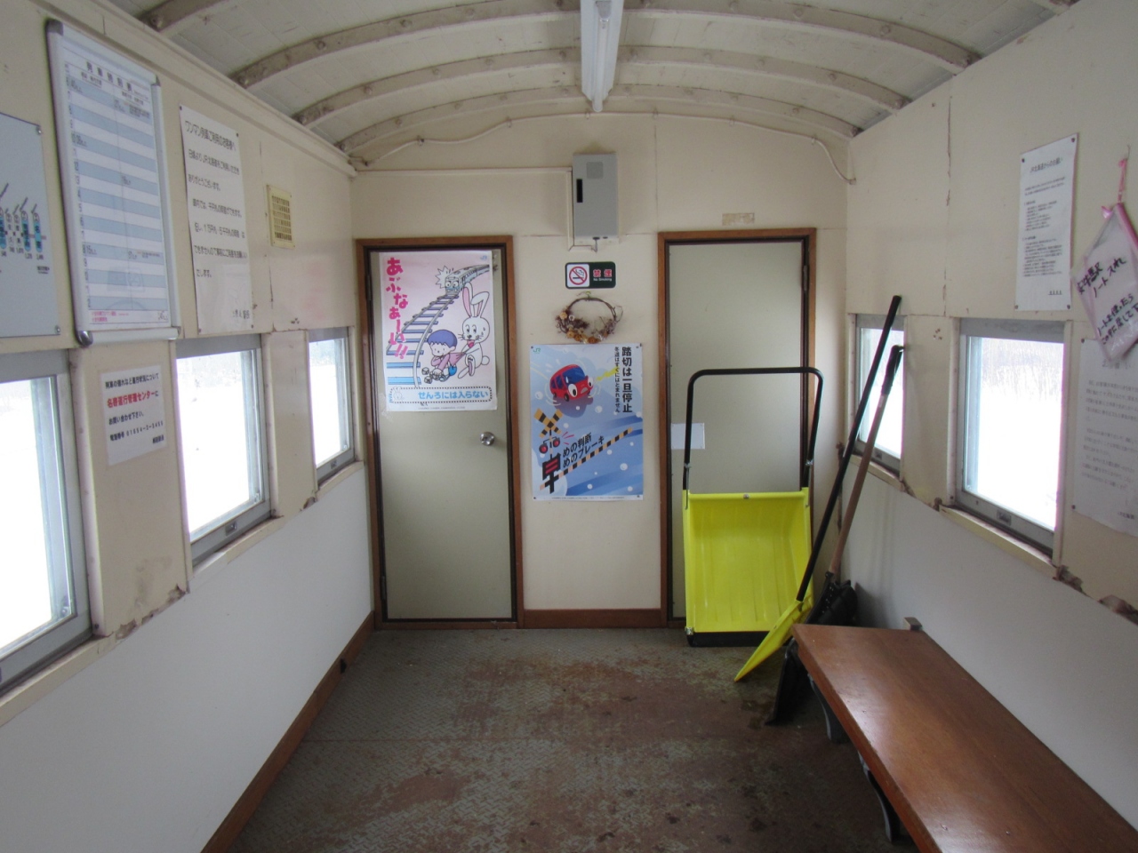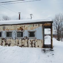 片側ホームに車掌車を利用した駅舎があるのみです。
