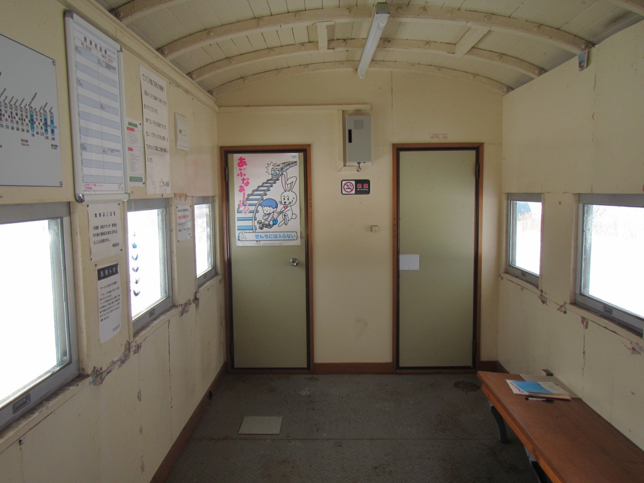 訪れるのは、鉄道ファンくらいなもので、車掌車を利用した駅舎には、それらの人向けの広告などがありました。