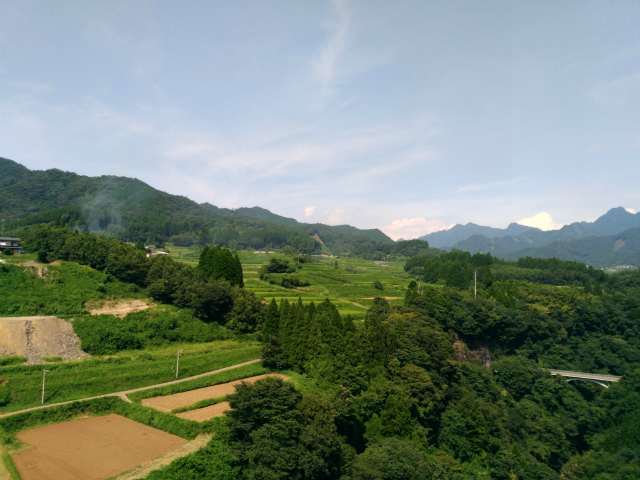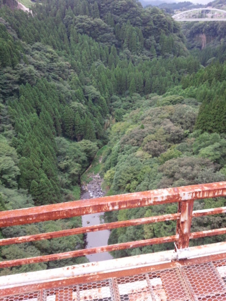 南阿蘇のペンションから車で10時過ぎに到着、8月終わりの平日だったためか10:40の便に乗れたが10時発の便に積み残しがあ... 続きを読むったとのこと。怪しい雲行の中発車。おじさんのガイドを含め手作り感満載です。トンネルを2つ過ぎ、天岩戸駅で風チェック後クライマックスの高千穂鉄橋へ。橋の幅が意外とあり思ったほど怖くない。けど100M以上の高さの鉄橋の上で腰の高さしかないトロッコに乗っているのはなかなかのスリル。真ん中で数分間止まっておじさんに写真を撮ってもらったり連結部から交代で真下を覗きおおっ!となったりしているうちに雨が降り出し椅子の下から合羽を出してきた道を戻る。線路が濡れ登りで車輪を激しく空転させつつ高千穂駅に帰還。おじさんも言ってましたが違う季節の時にも体験したい。高千穂訪問の際はカートかボートのスケジュールが中心かと。